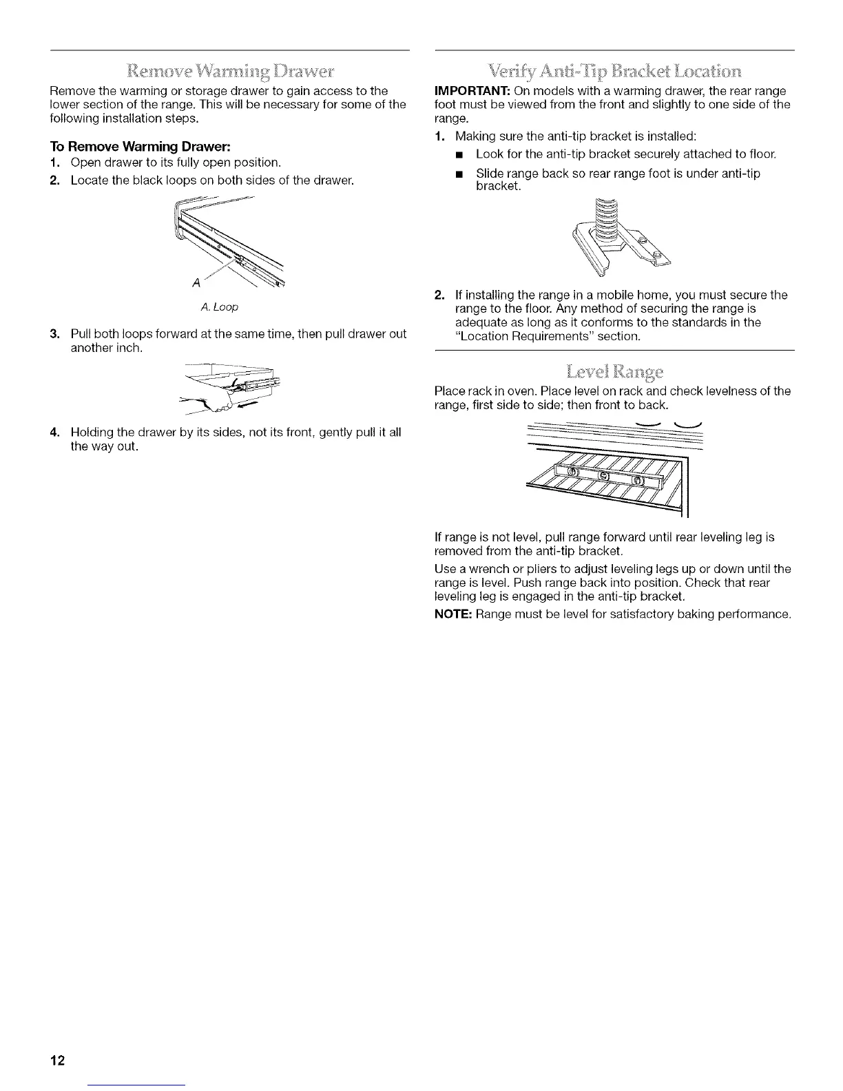 NOTE: Range must be level for satisfactory baking performance.
