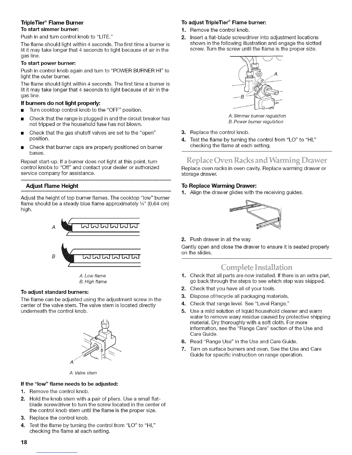 To adjust TripleTier ®Flame burner:
