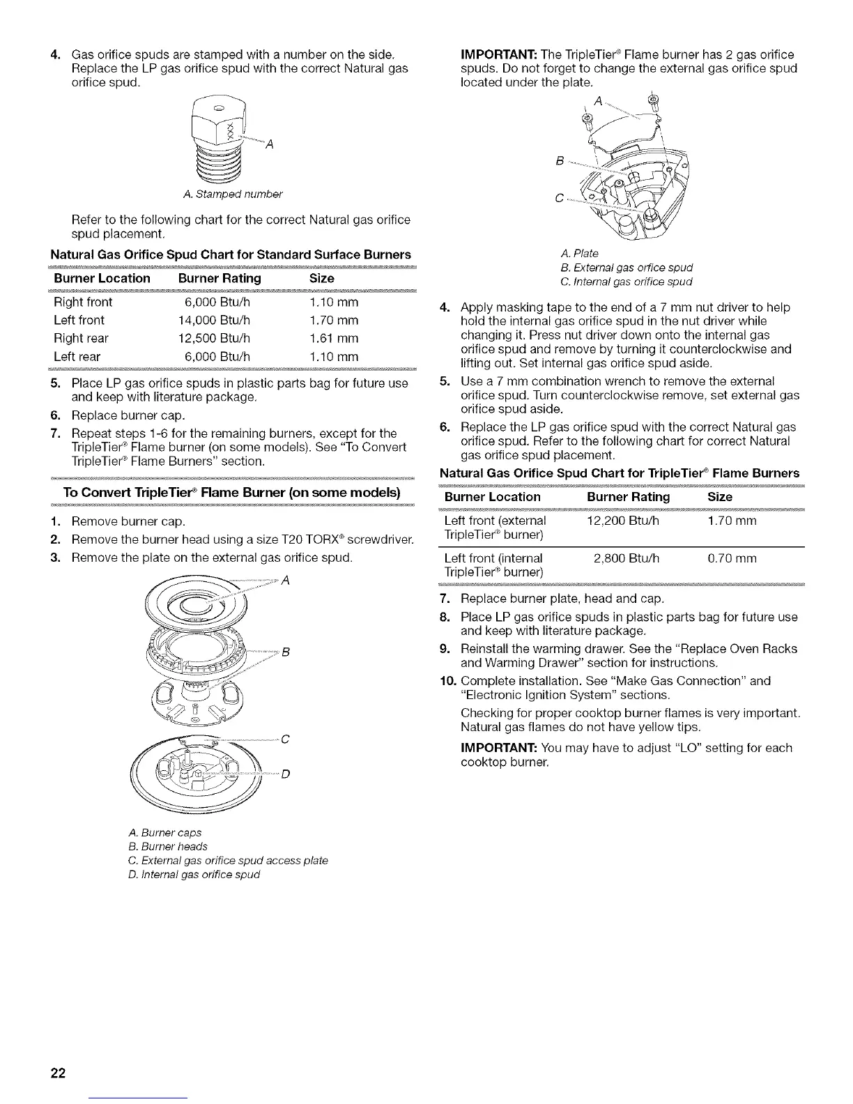 IMPORTANT: The TripleTier ®Flame burner has 2 gas orifice