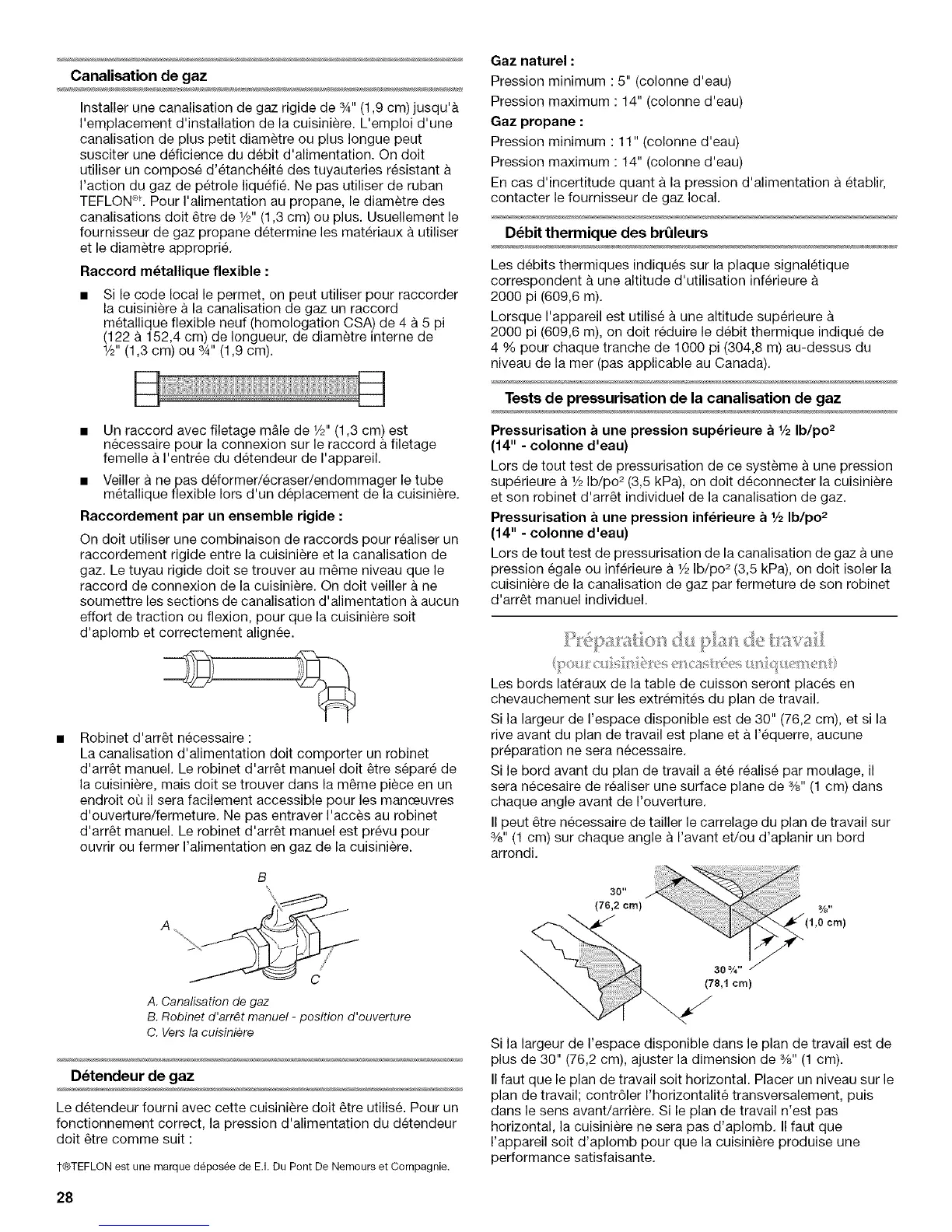 superieure a r/2Ib/po 2 (3,5 kPa), on dolt deconnecter la cuisiniere