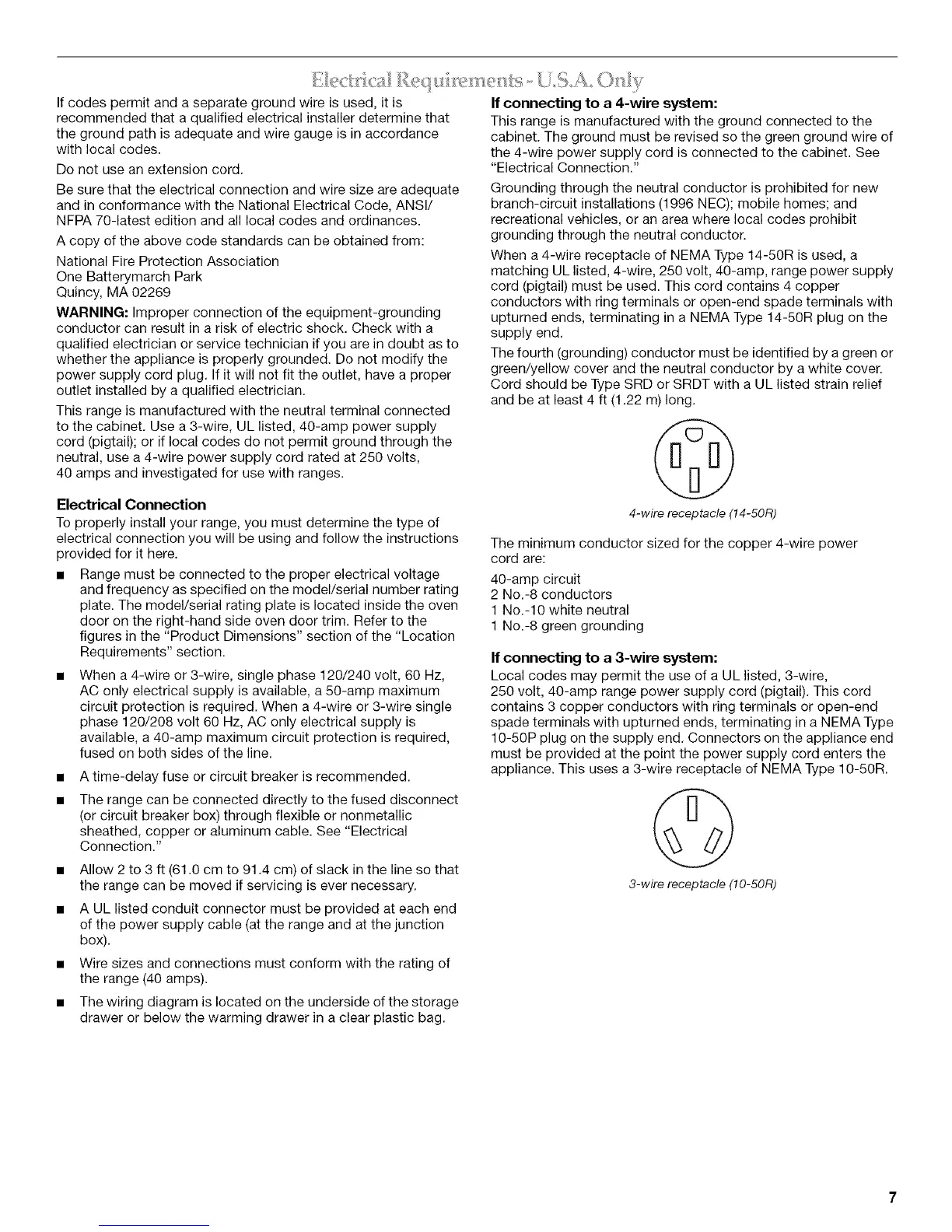 appliance. This uses a 3-wire receptacle of NEMA Type 10-50R.