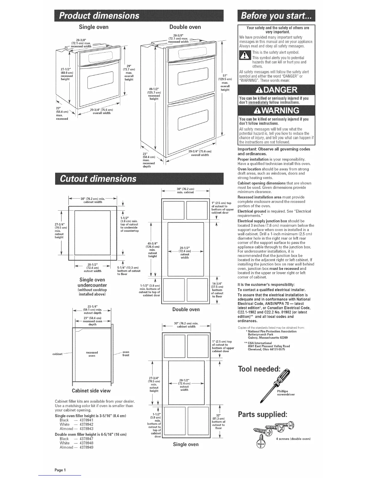 wall cabinet. Drill a 1-inch minimum (2.5 cm}