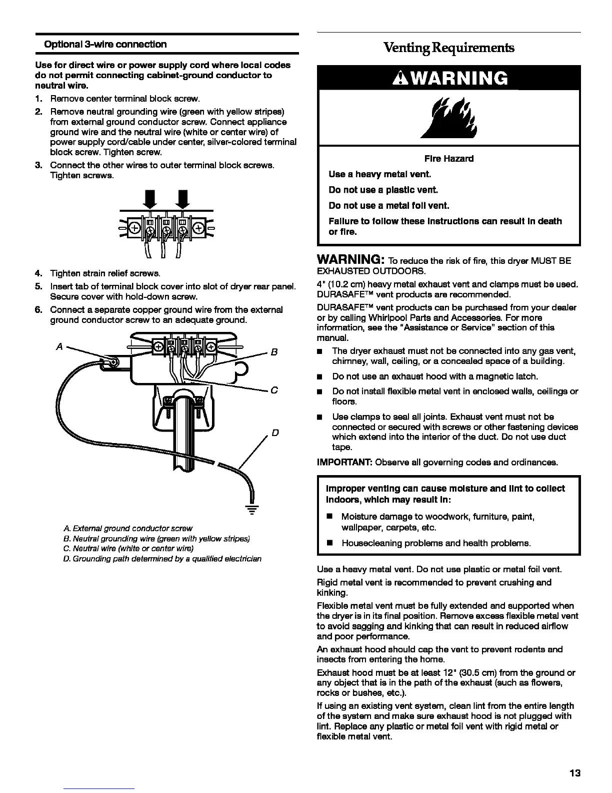 WARNING: To reduce the risk of fire, this dryer MUST BE