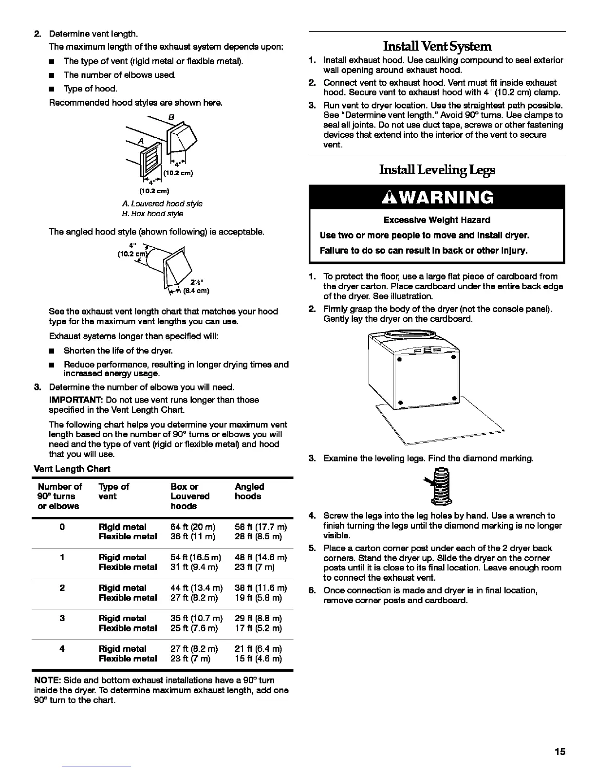 inside the dryer. To determine maximum exhaust length, add one