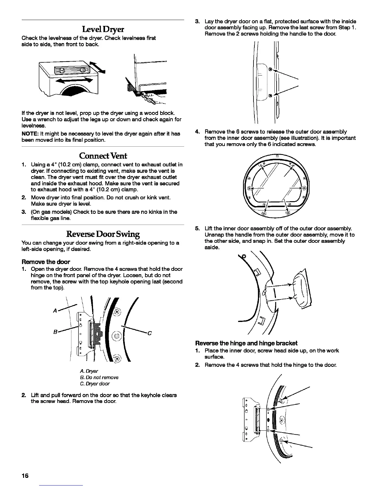 dryer. If connecting to existing vent, make sure the vent is