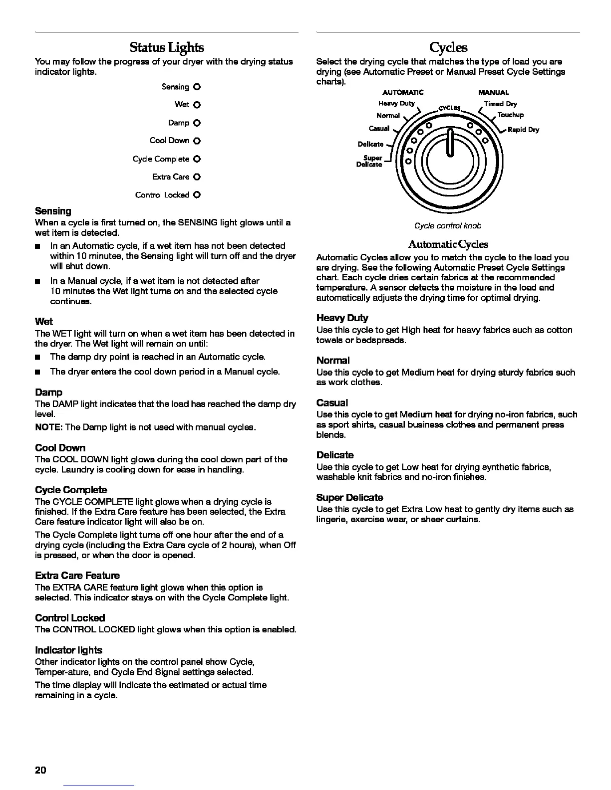 The CYCLE COMPLETE light glows when a drying cycle is