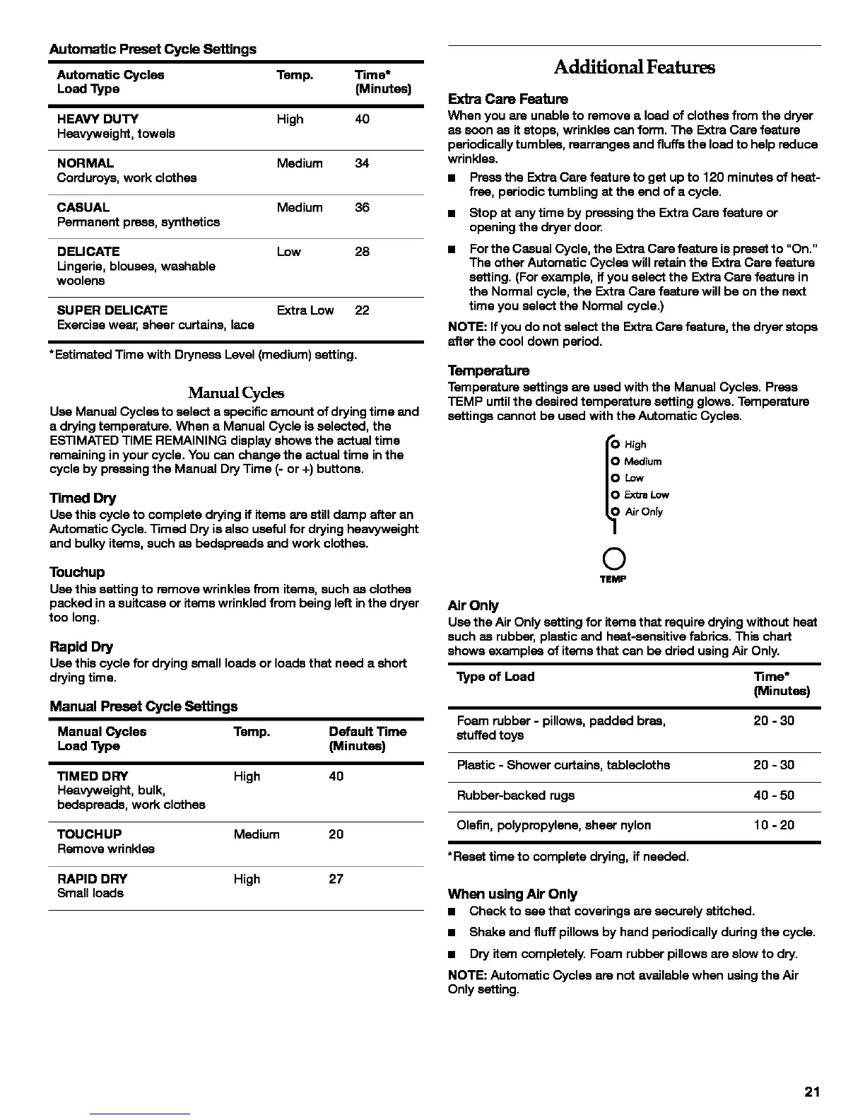 Automatic Cycle. Timed Dry is also useful for drying heavyweight