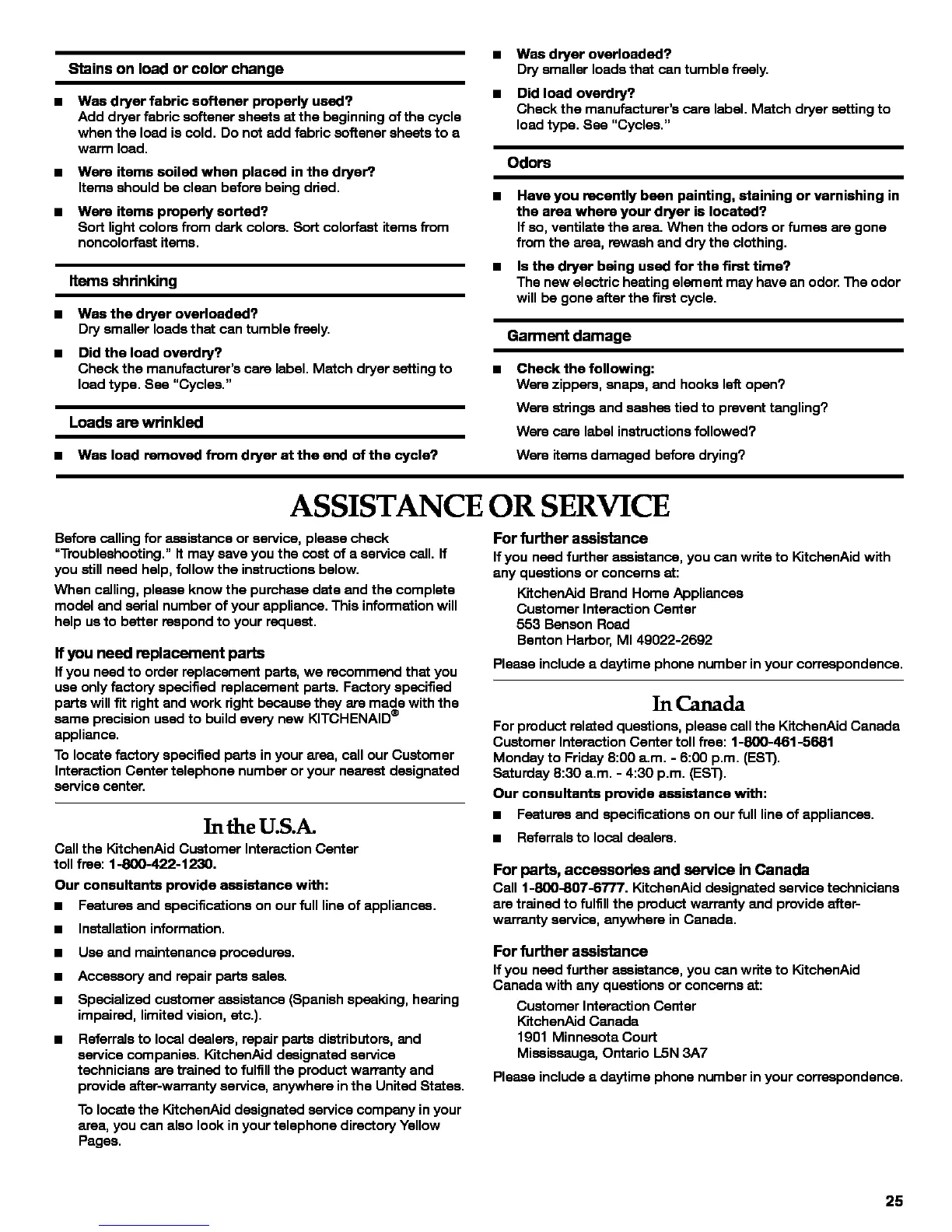Call 1-800-807-6"/77. KitchanAid designated service technicians