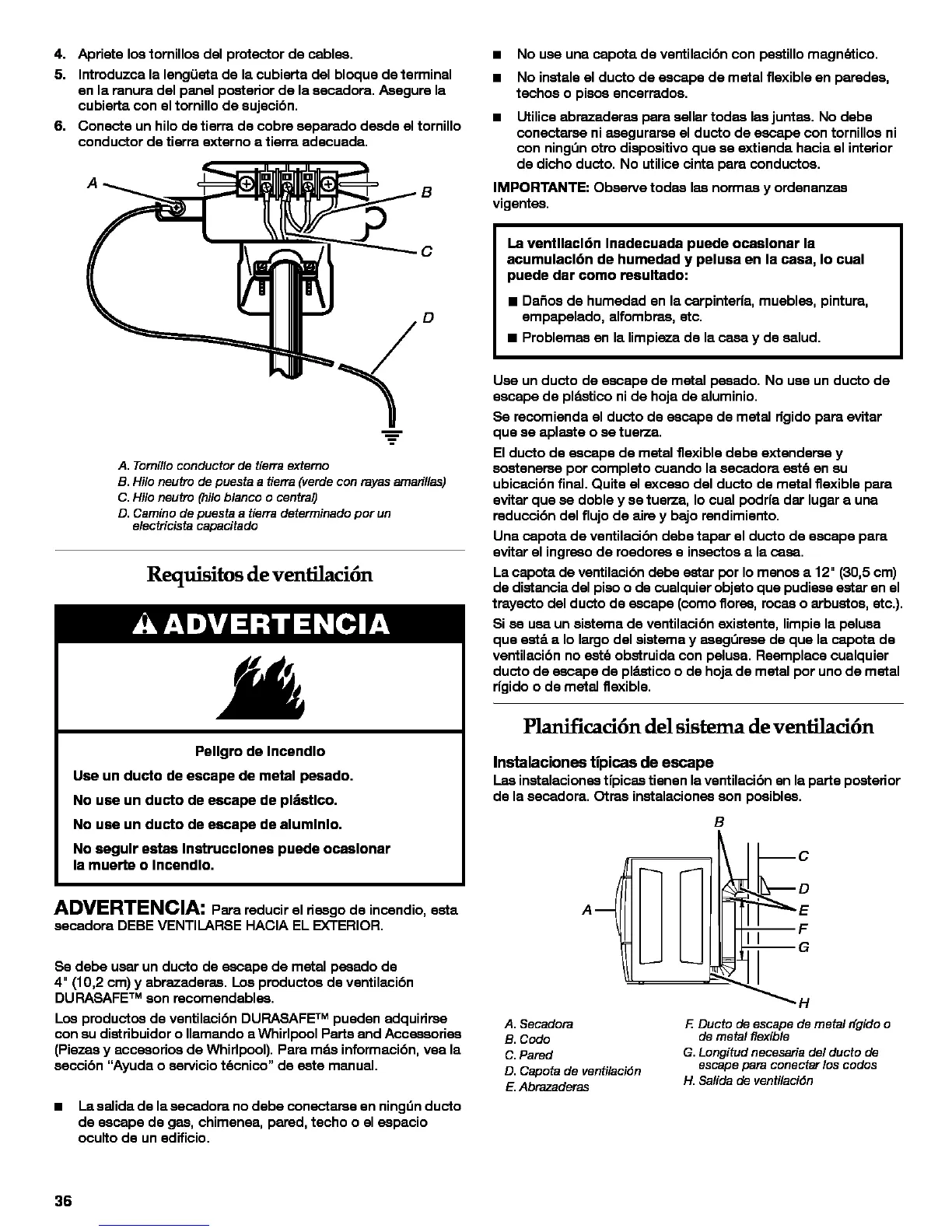 secadora DEBE VENTILARSE HACIA EL EXTERIOR.