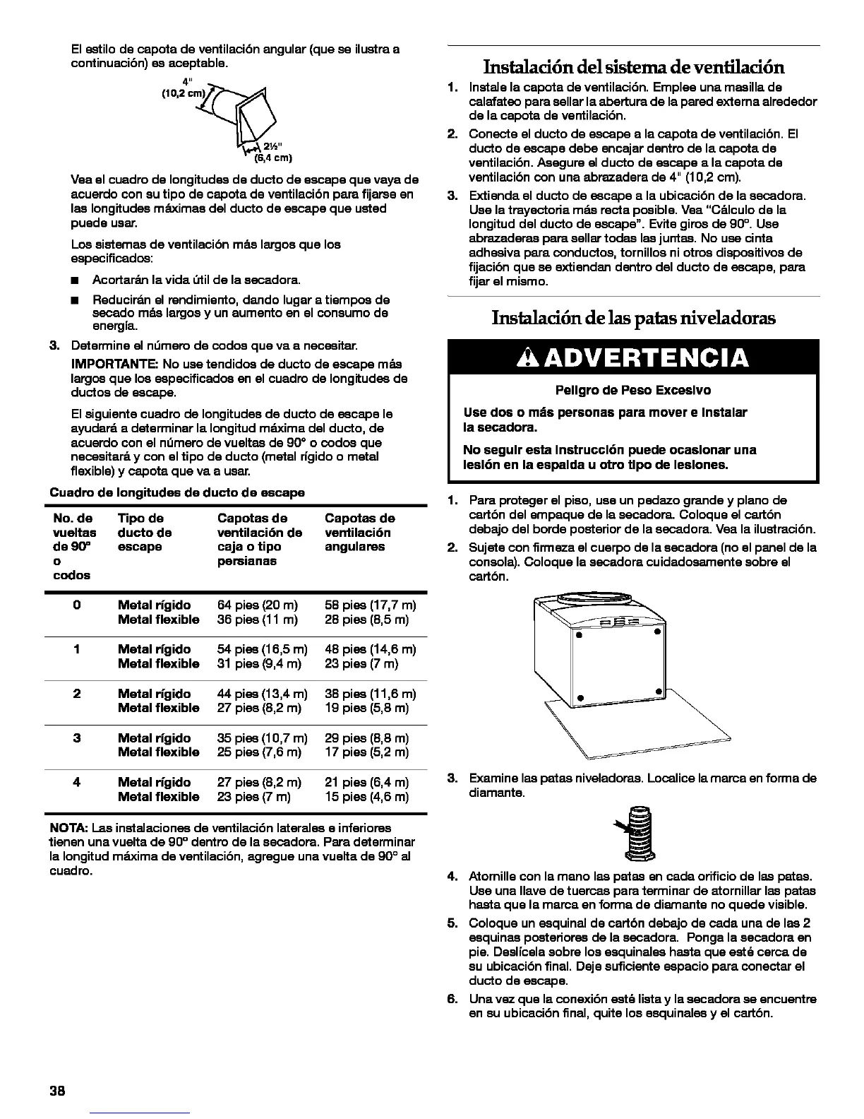 Vea el cuadro de longitudes de ducto de escape que vaya de