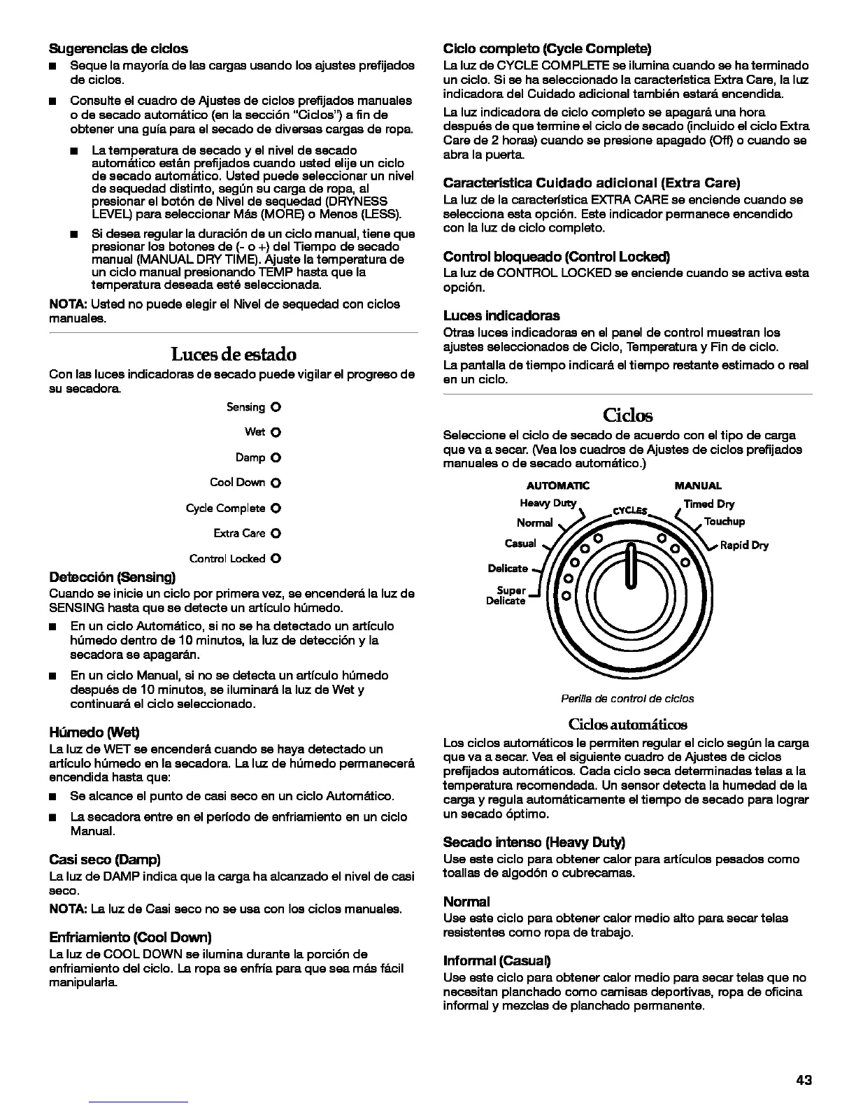 Los ciclos automdticos le permlten regular el ciclo esgOn la carga