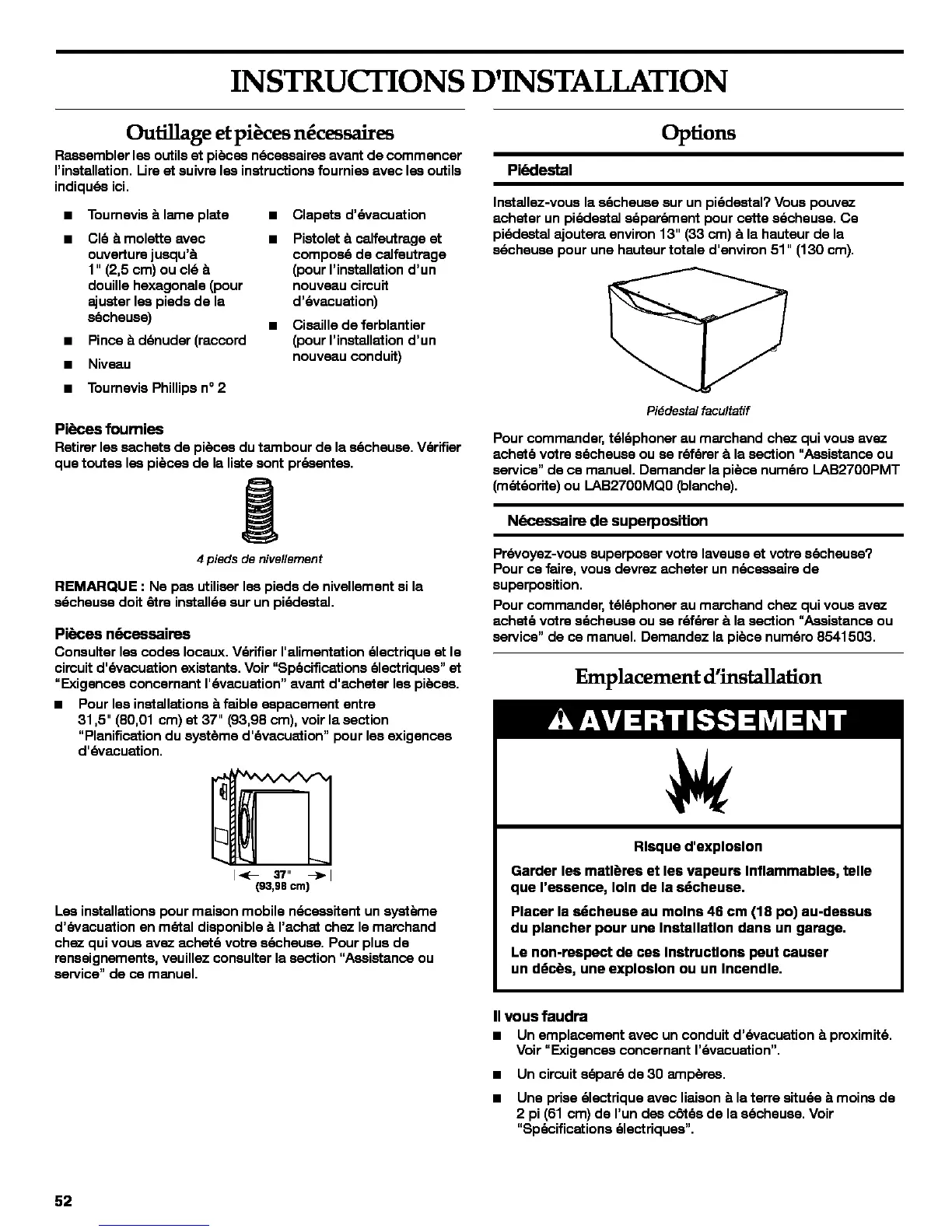service" de ce manuel. Demandez la pi6ce num6ro 8541503.