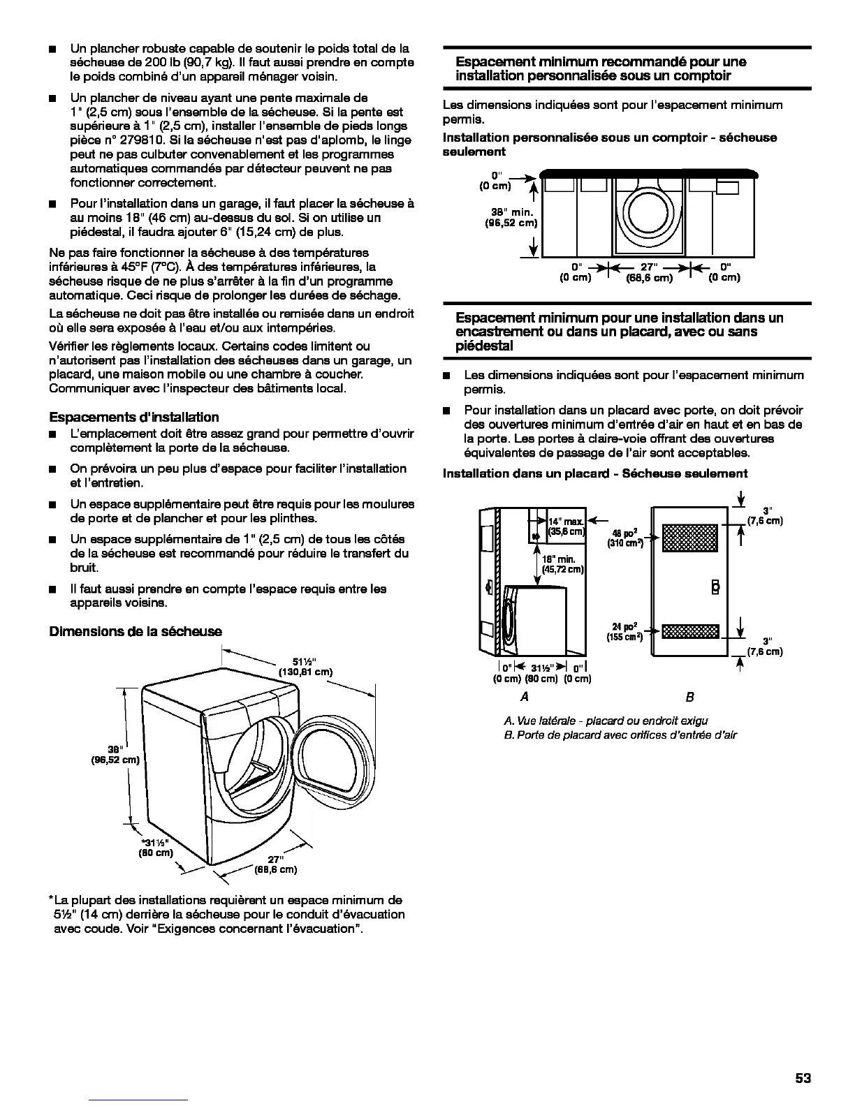 • Pour I'installation dans un garage, il faut placer la s_cheuse _.