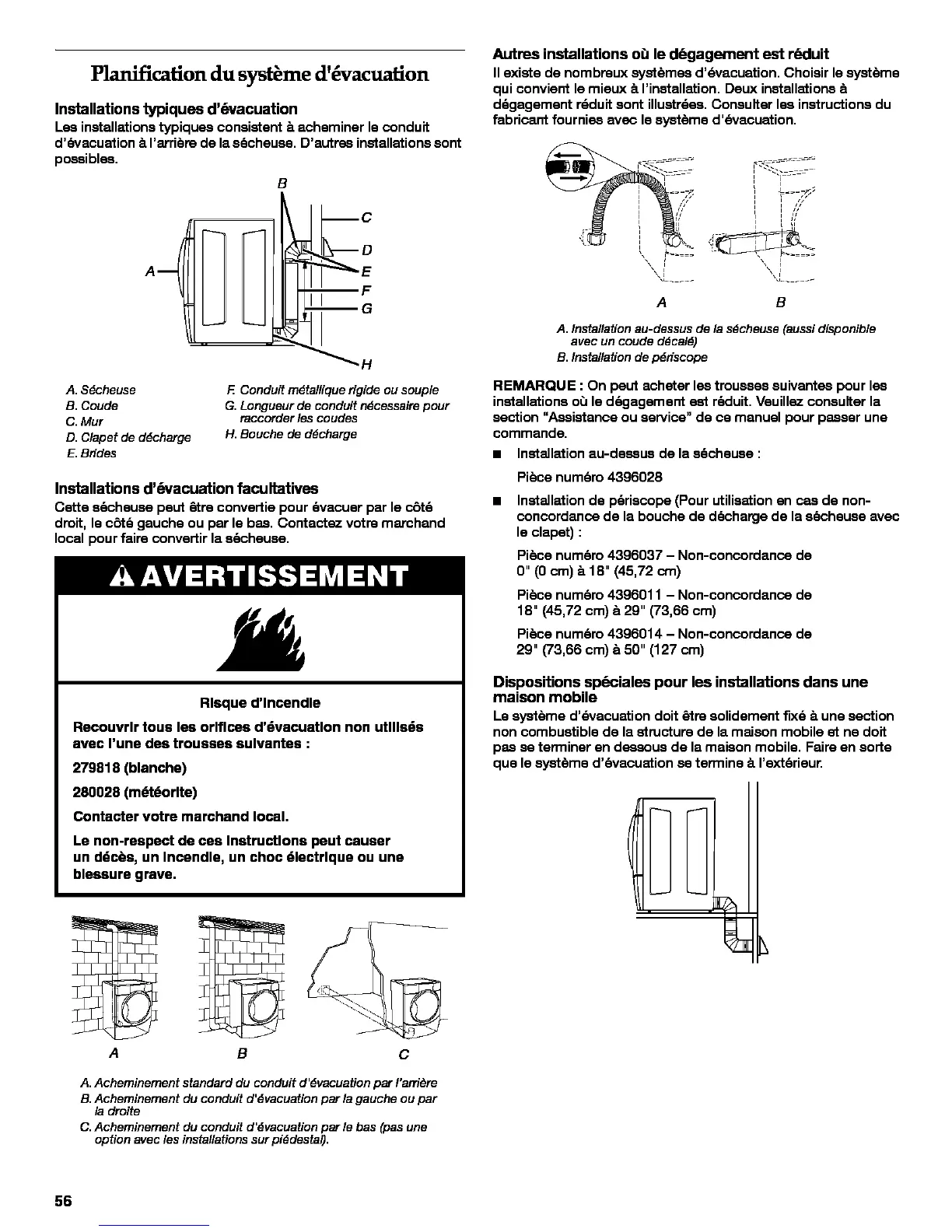 A. Acheminement standard de conduit d'_vacuation par I'ani_re
