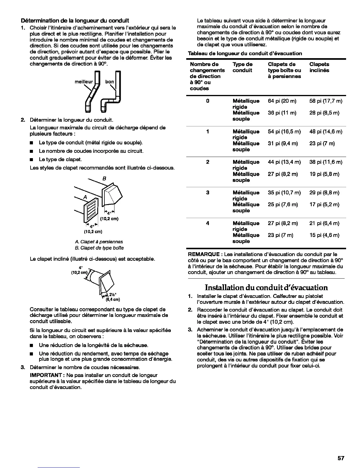 IMPORTANT : Ne pes installer un conduit de Iongeur