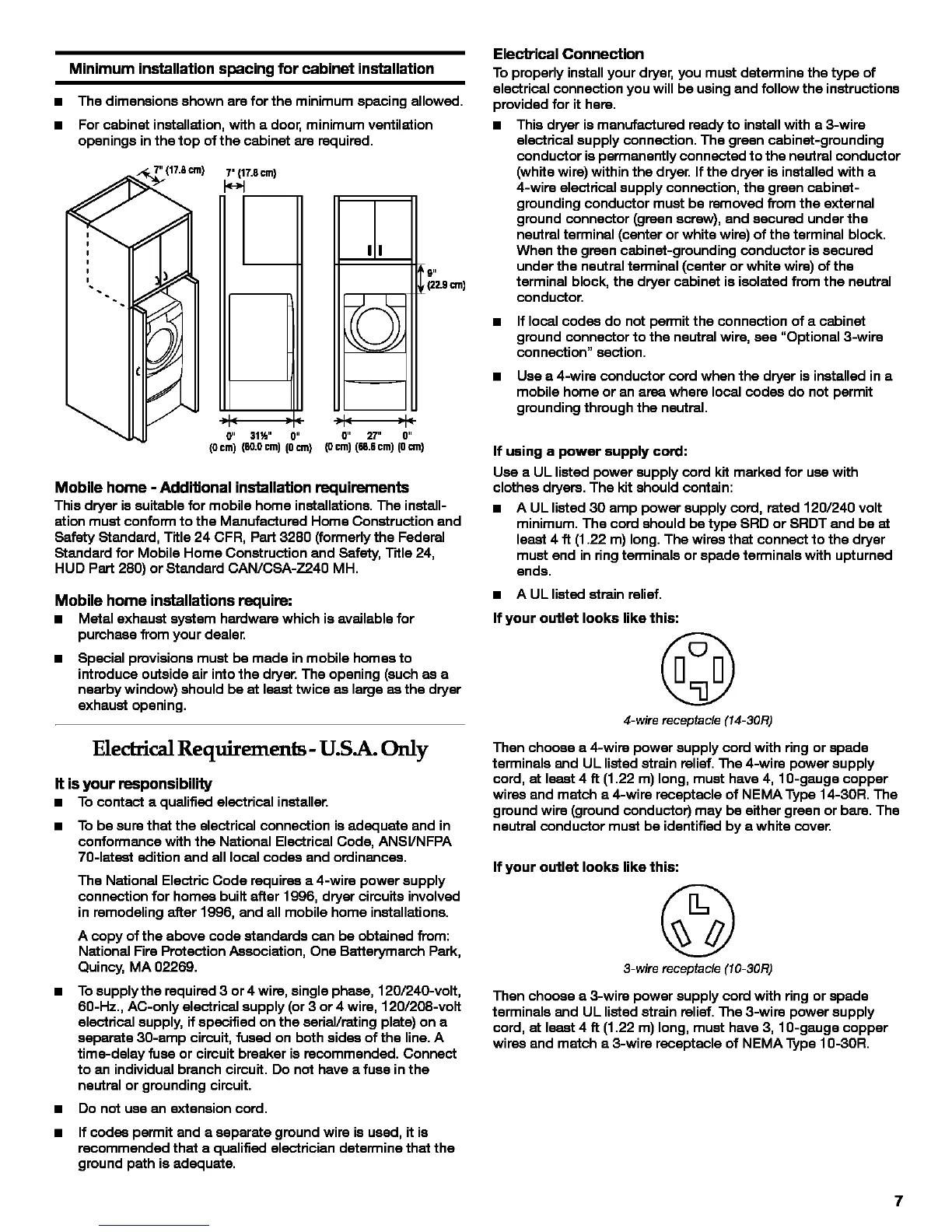 m Use a 4-wire conductor cord when the dryer is installed in a
