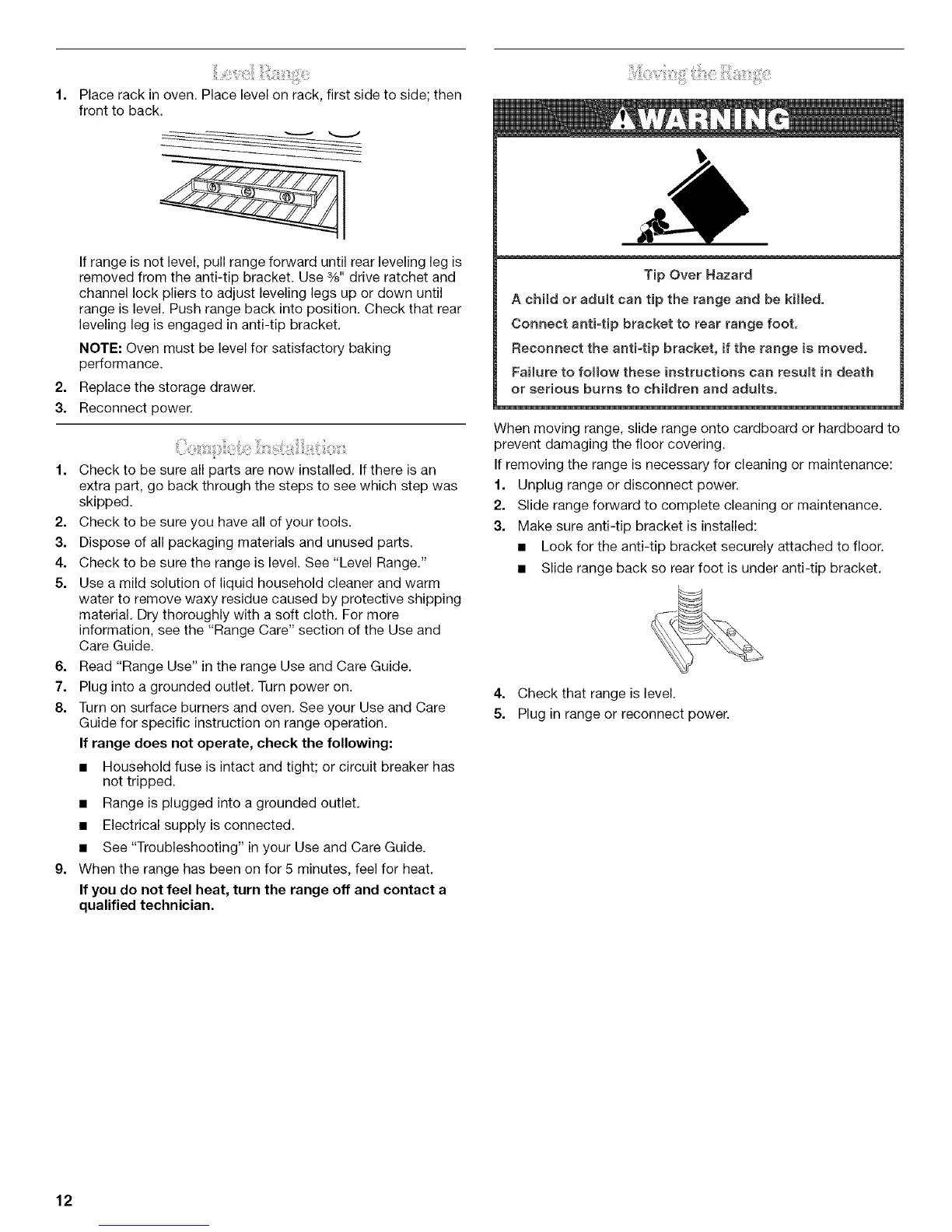 removed from the anti-tip bracket. Use %" drive ratchet and