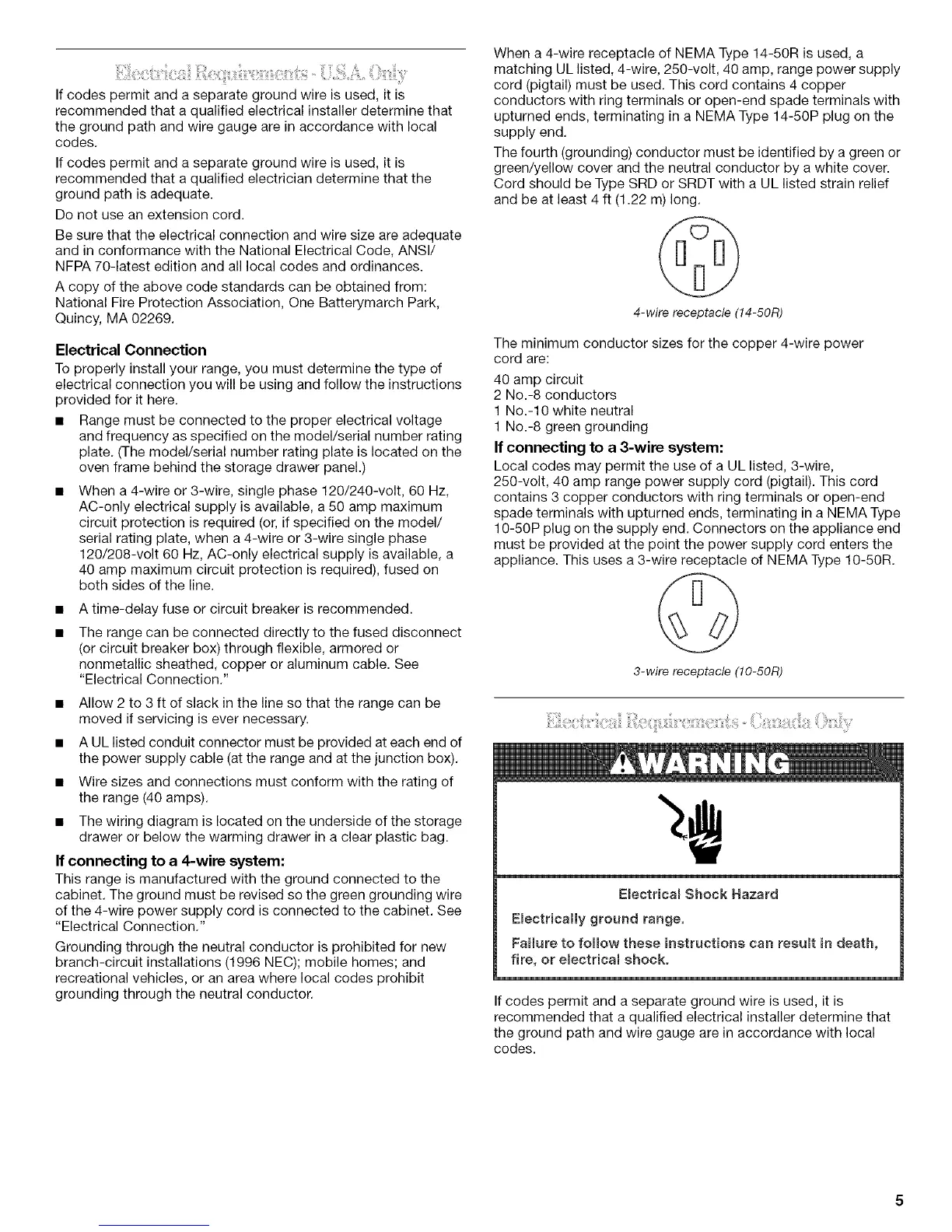 appliance. This uses a 3-wire receptacle of NEMA Type 10-50R.