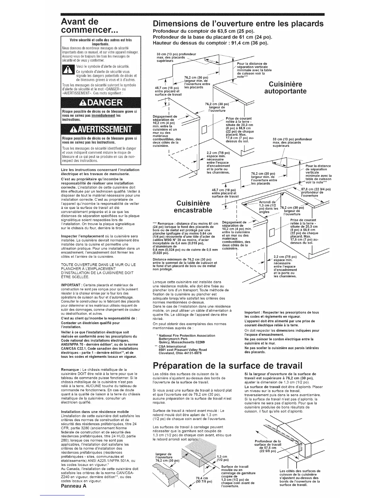 travail est sup_rieure & 76,2 cm (30 po),