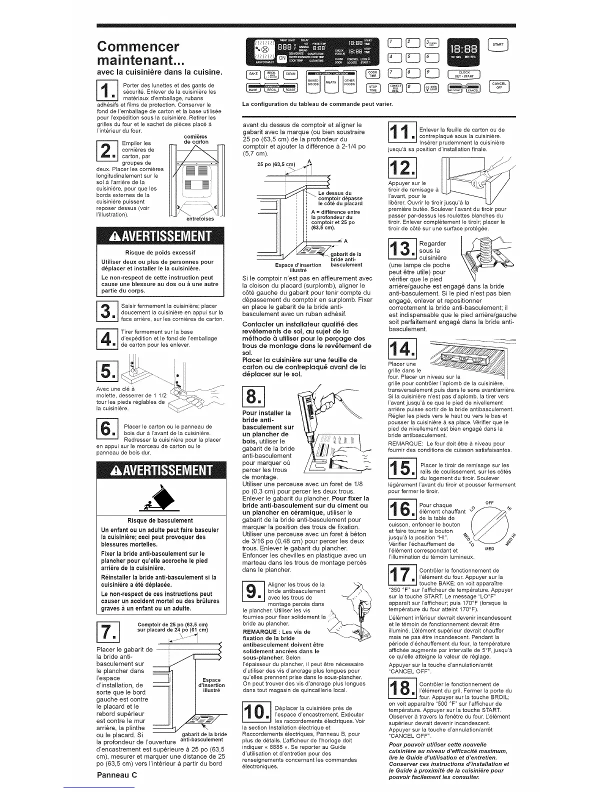 i j Deplacer la cuisiniere pres de[] I'espace d'encastrement. Executer