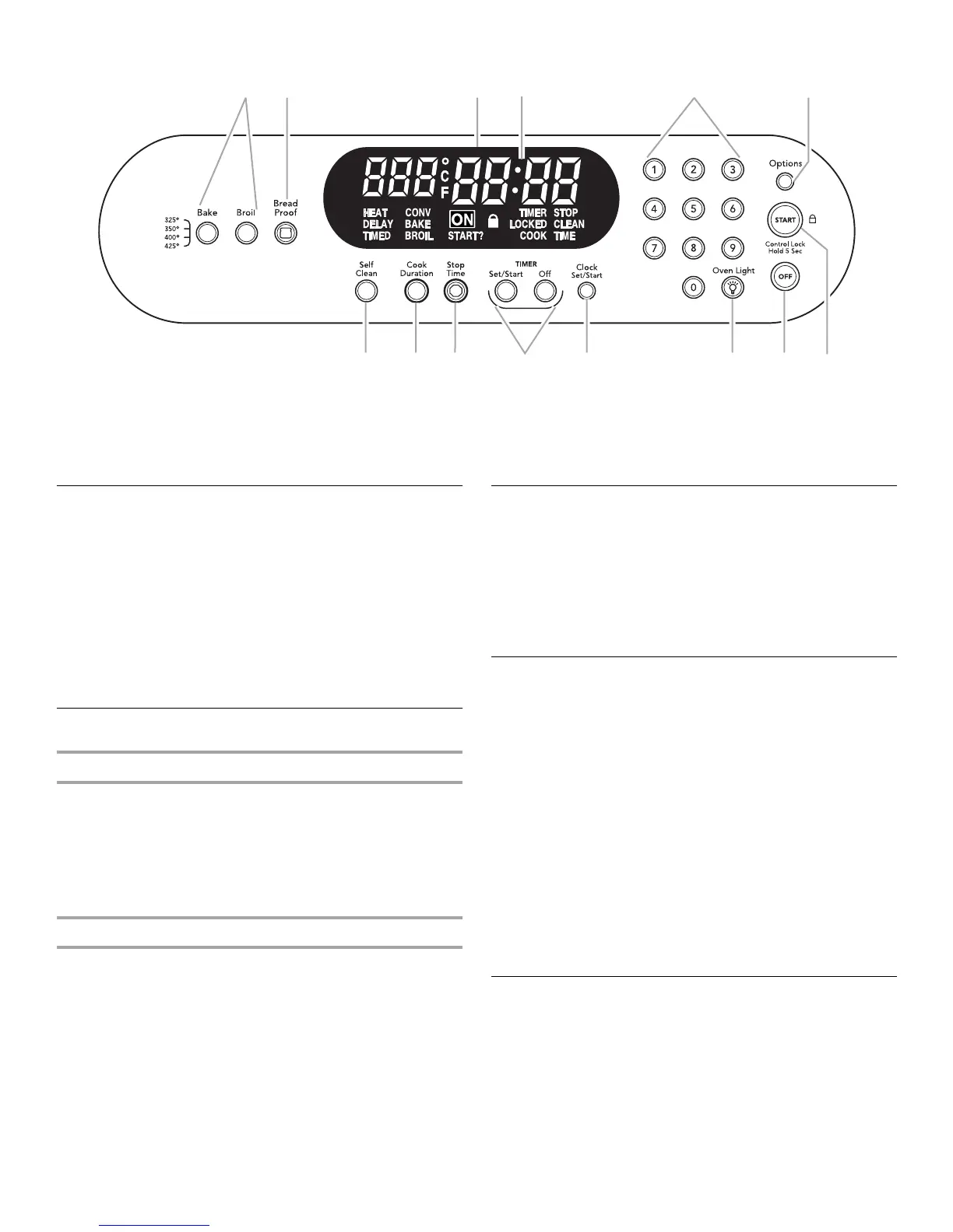 réglage/mise en marche et OVEN LIGHT (lampe du four)