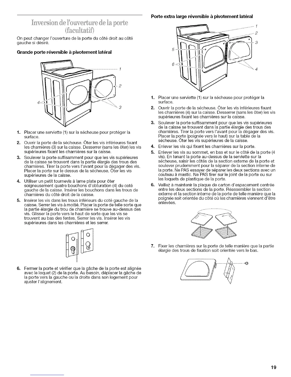 Placer la porte sur le dessus de la secheuse. Oter les vis