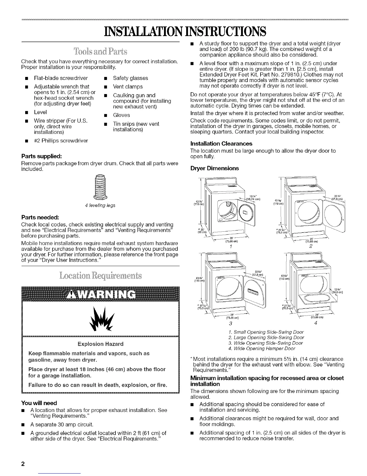 The location must be large enough to allow the dryer door to