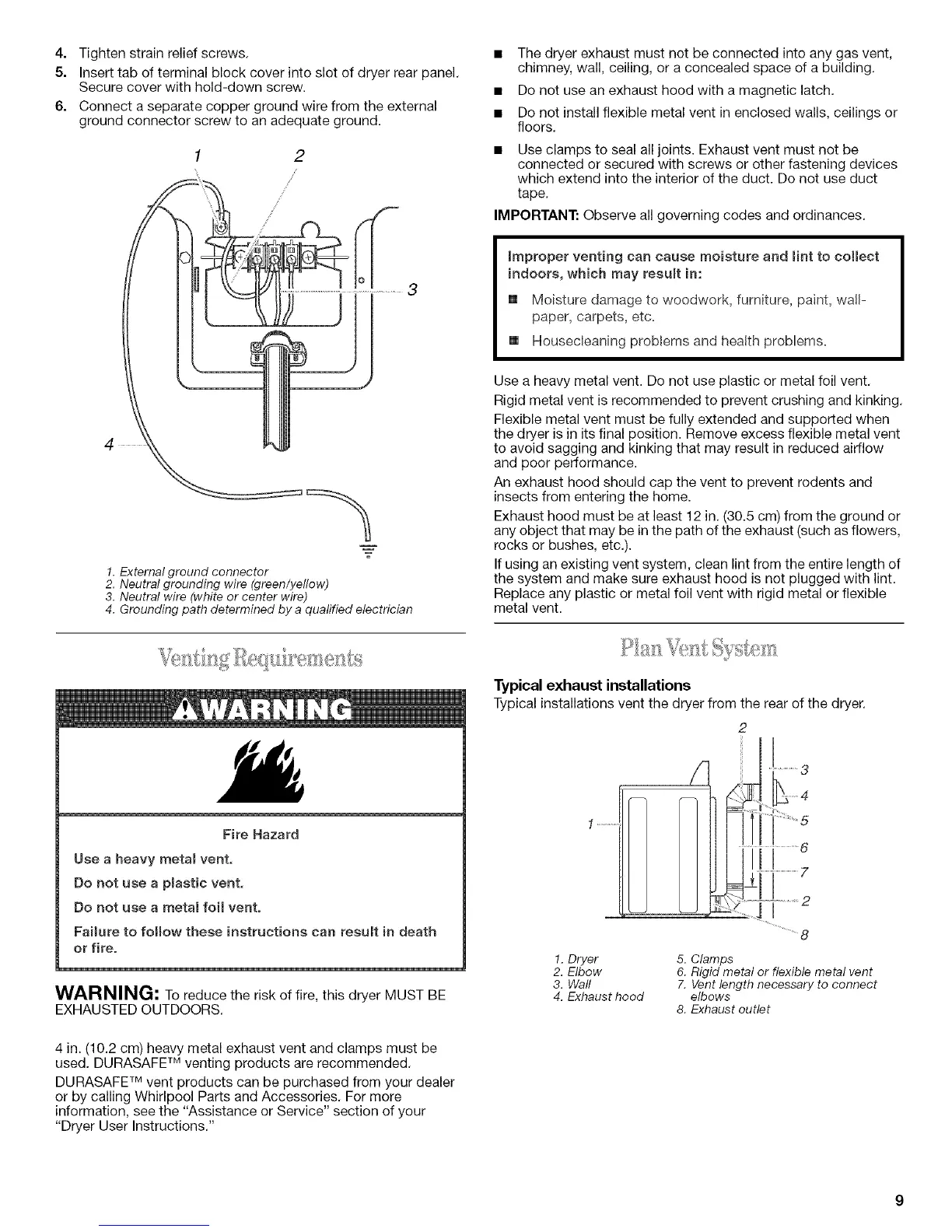 4 in. (10.2 cm) heavy metal exhaust vent and clamps must be