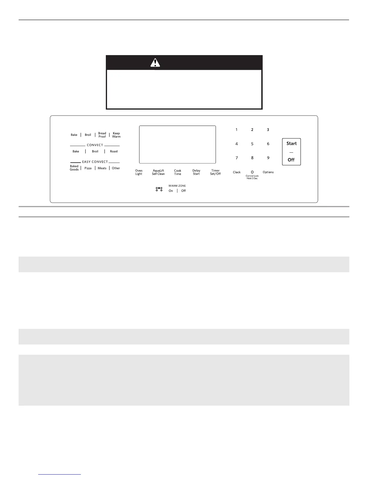 OFF Range function The Off keypad stops any oven function except the Clock, Timer, Control Lock, and Warm Zone.