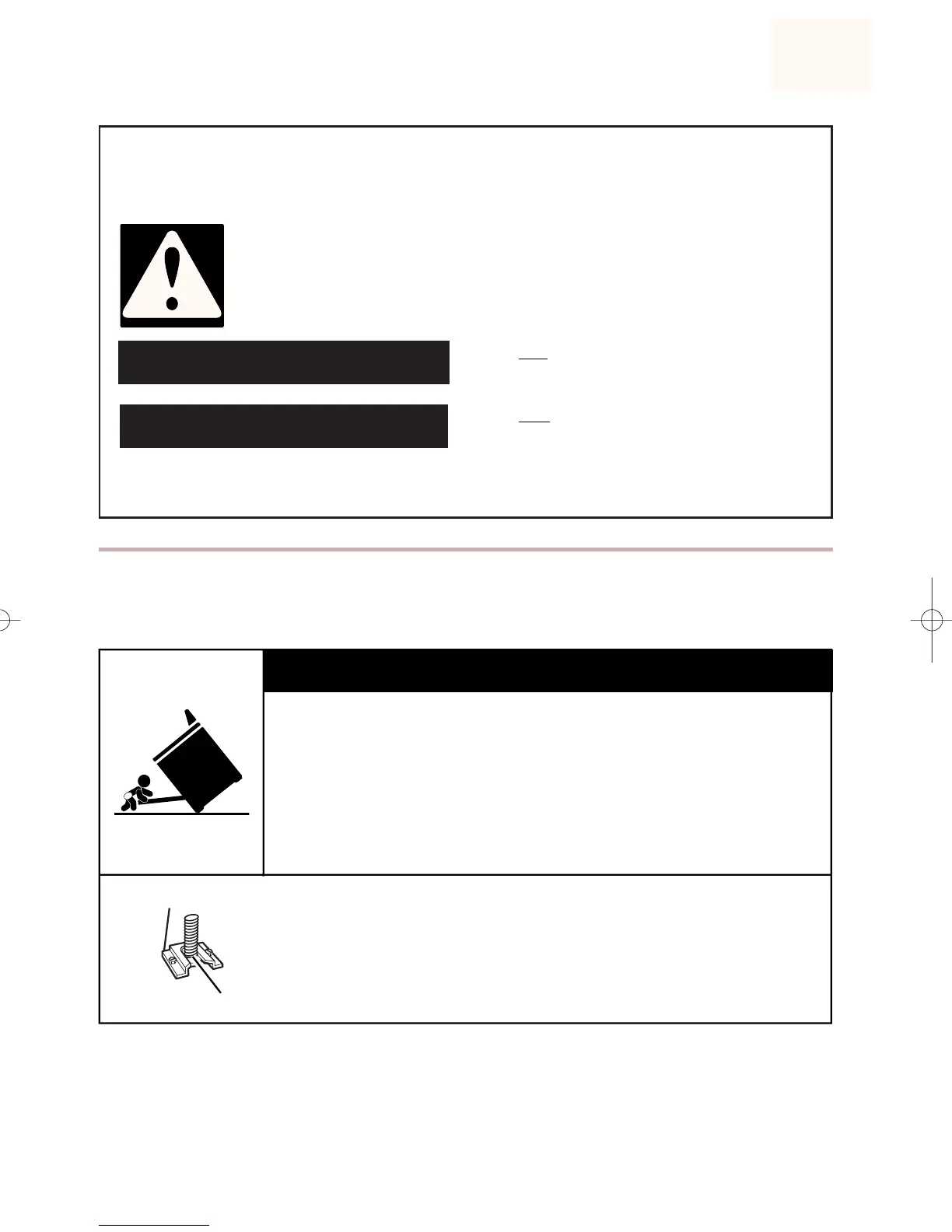 force or weight to the open door without the anti-tip bracket properly secured.