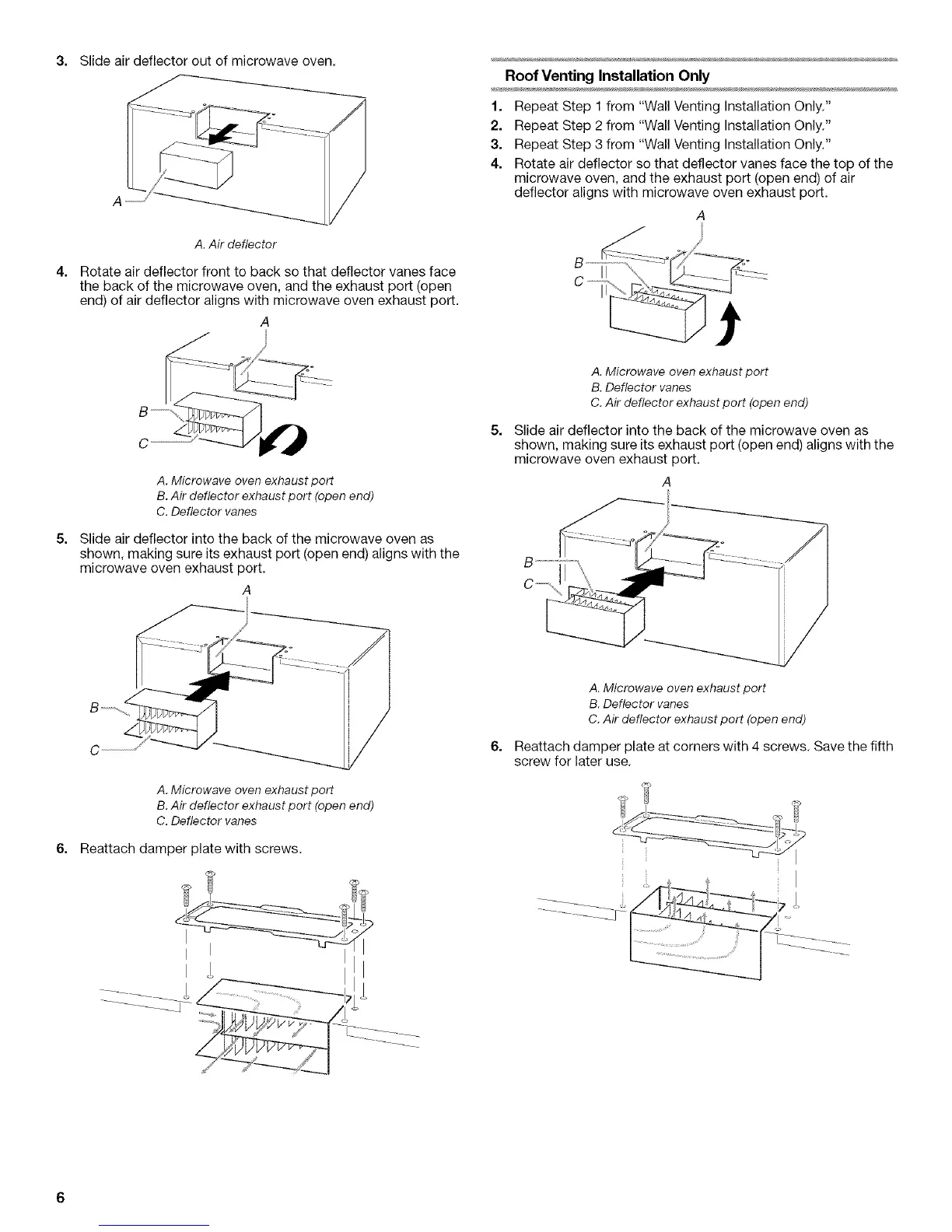 end) of air deflector aligns with microwave oven exhaust port.
