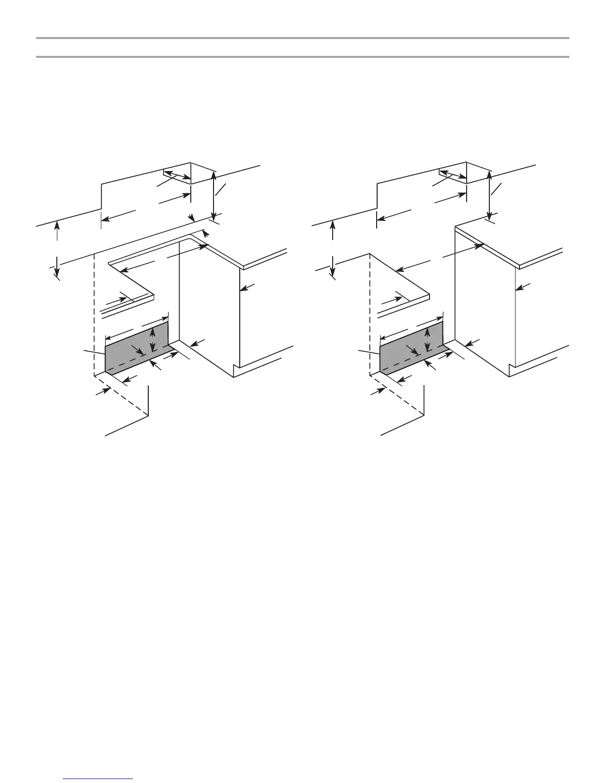 Les dimensions de l’ouverture entre les placards correspondent à une installation entre des placards de 25" (64,0 cm) de profondeur,