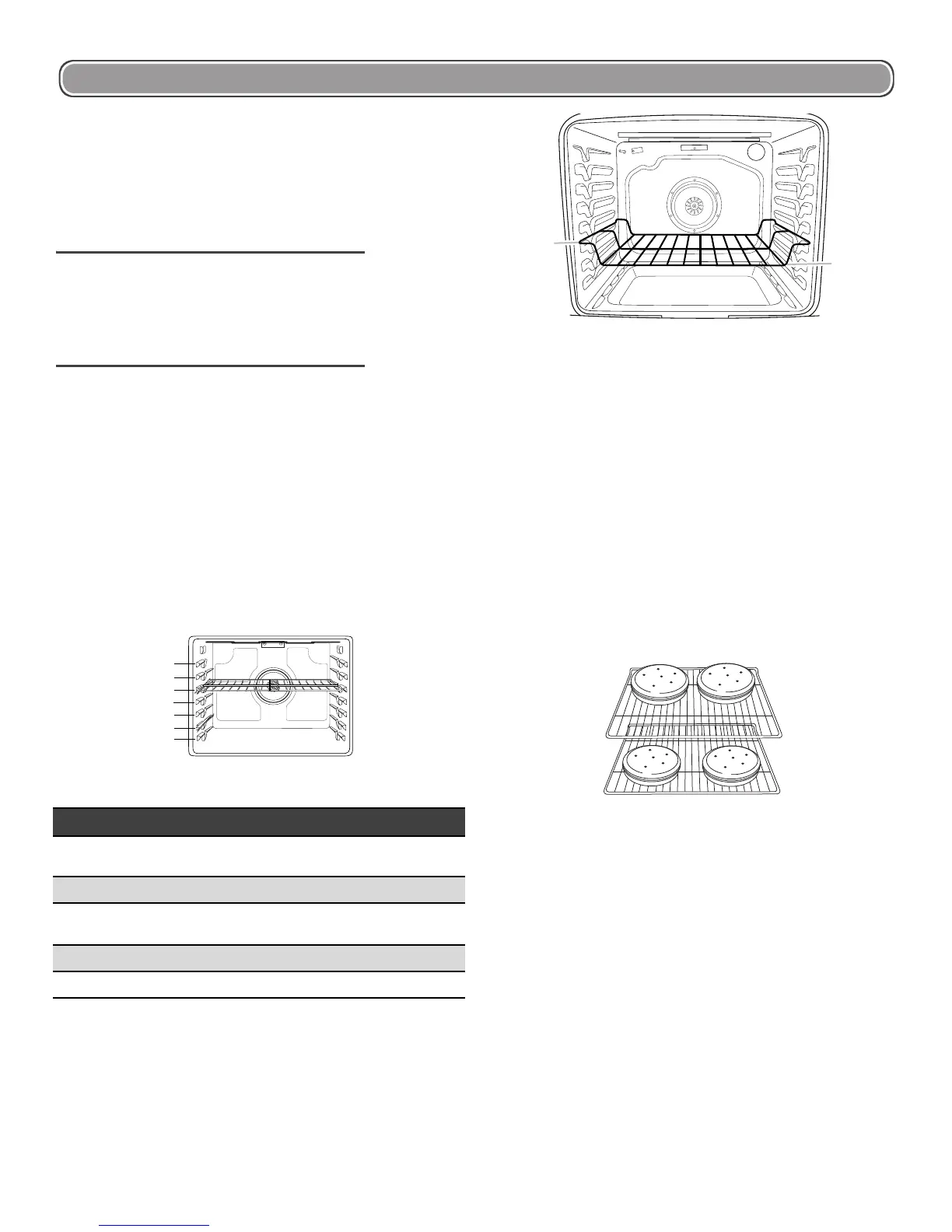 2-rack (convection): Use rack positions 2 and 5 or 3 and 6.
