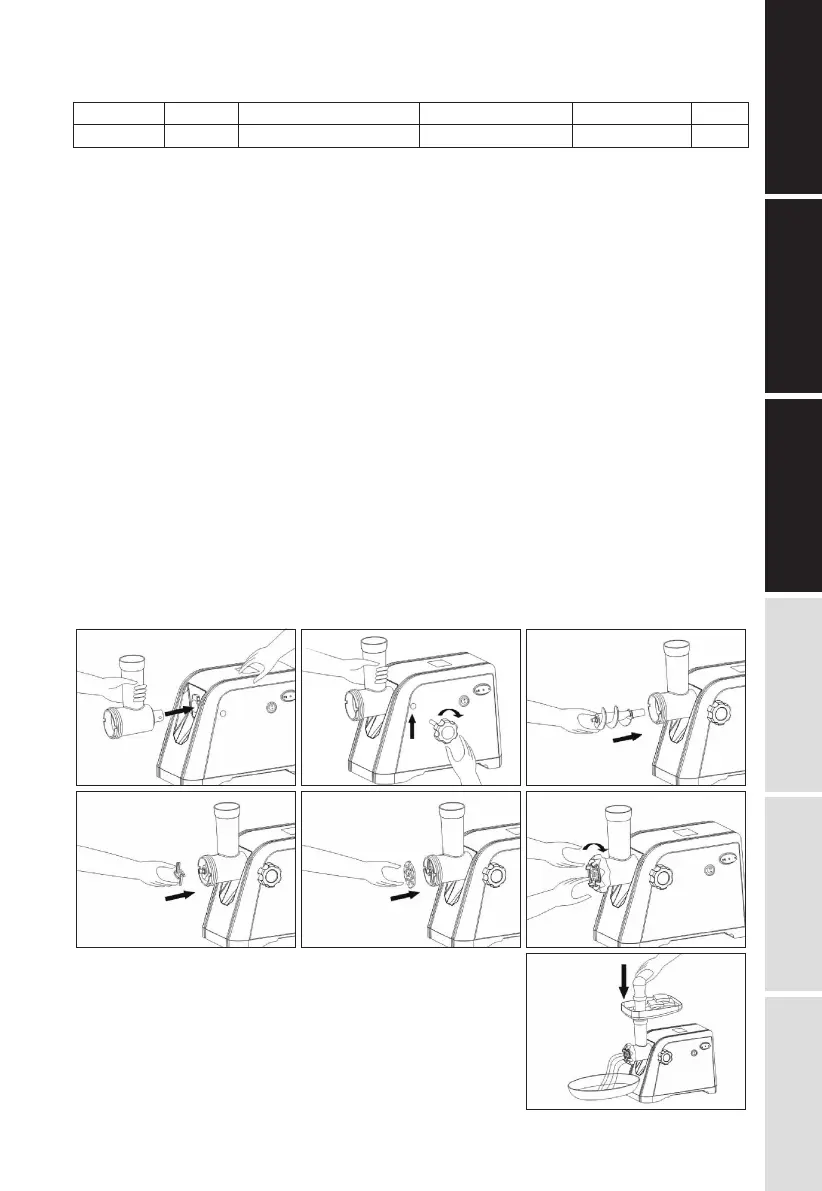 • Insérez la tête de hache viande dans le logement de moteur; rassurez-vous que la gorge de