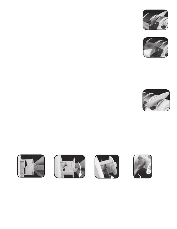 fente et abaisser le talon de la lame de prendre contact avec les roues de verrouillage.