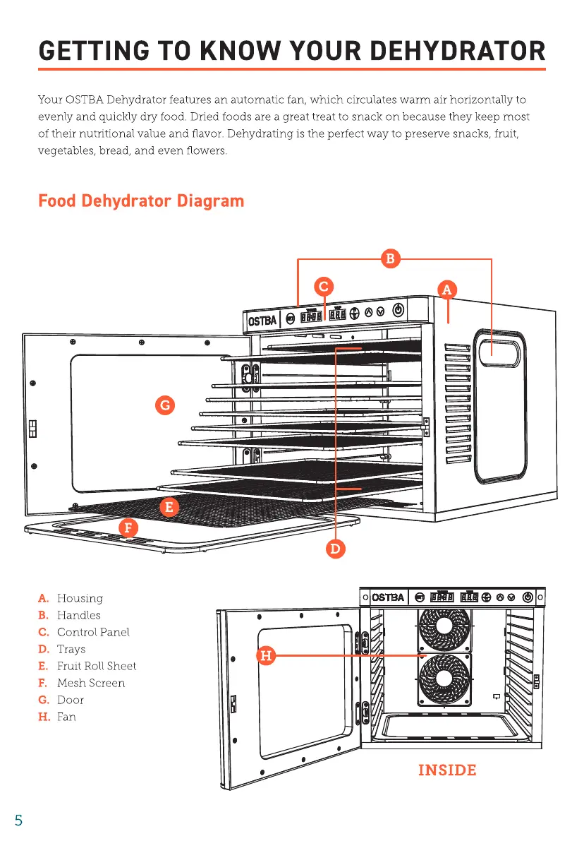 KITIDEA VT-FD001 - Getting to Know Your Dehydrator; Food Dehydrator Diagram