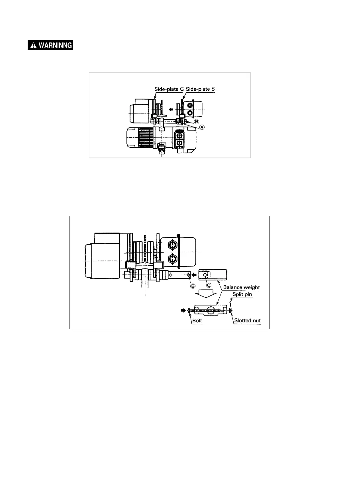 As shown in Fig 5-10, place the balance weight over the suspension shaft and align with holes B and C. Fit