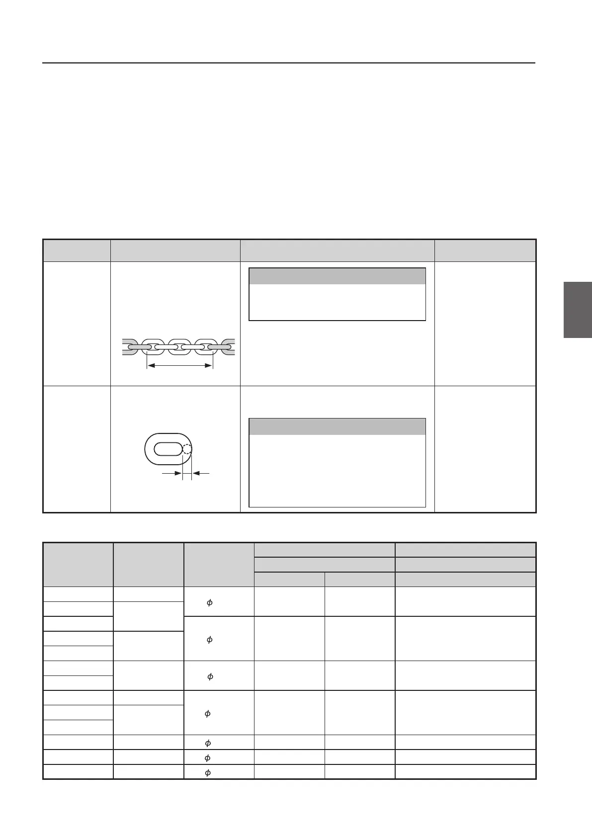 Load Chain Pitch and Wire Diameter for Each Capacity
