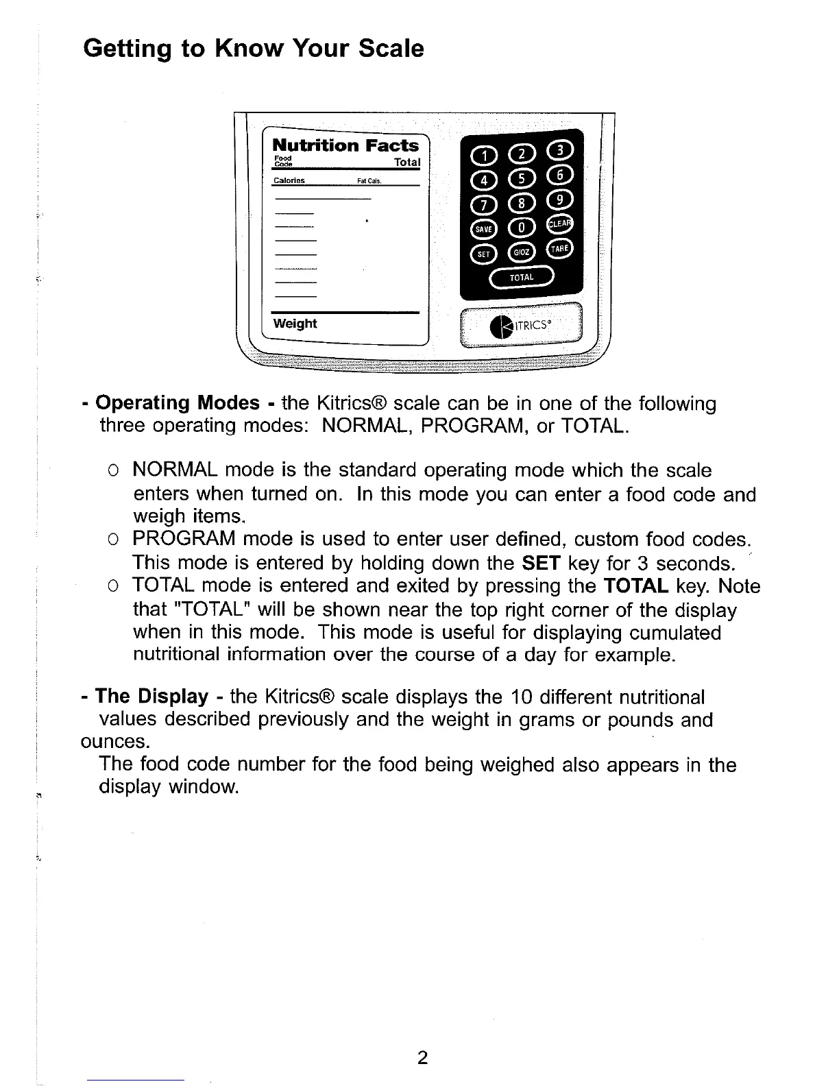 Kitrics B000U67EI0 - Getting to Know Your Scale; Operating Modes; The Display; The Keypad