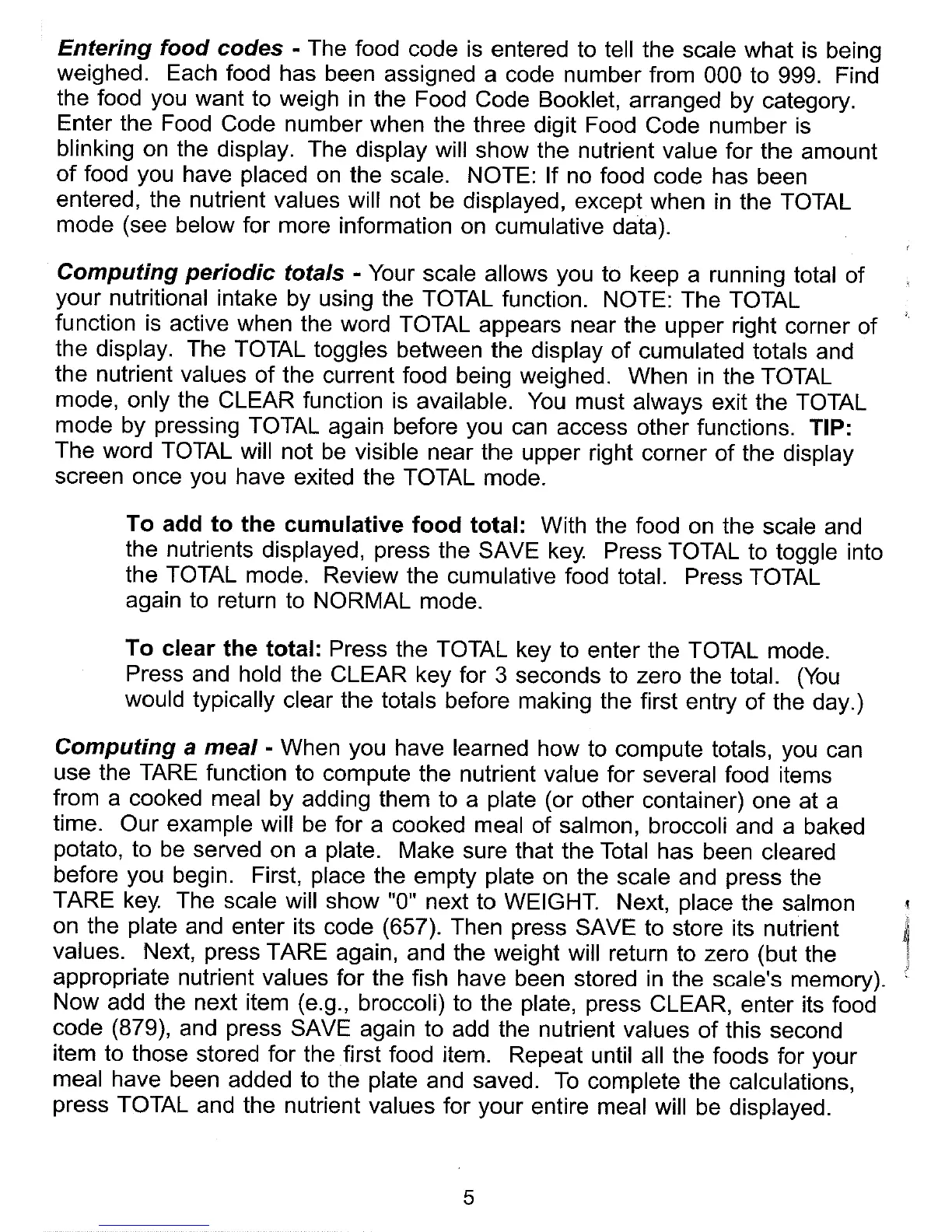 Kitrics B000U67EI0 - Entering Food Codes; Computing Periodic Totals; Computing a Meal