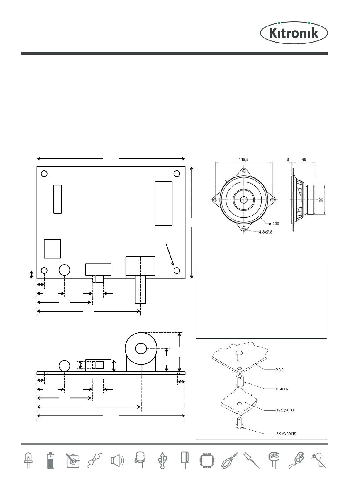 These technical drawings of the amplifier PCB and speaker should help you to plan this.
