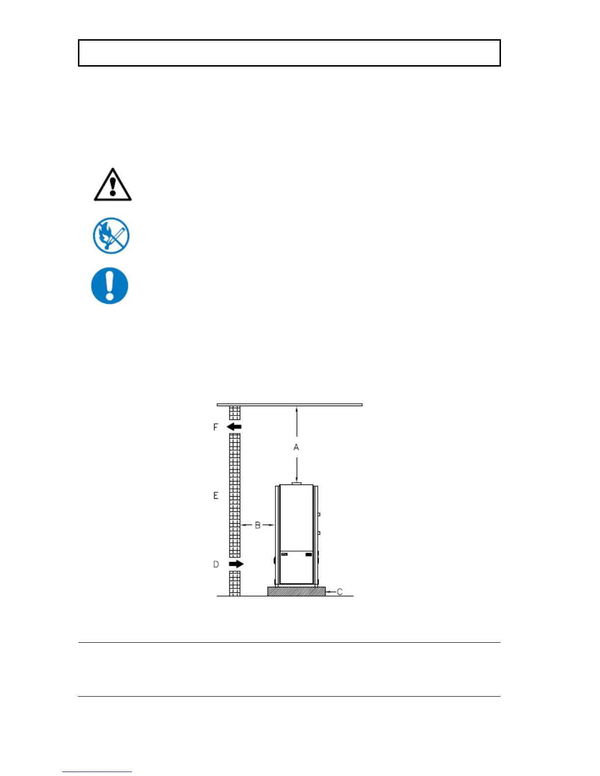 C Min. 5 cm of support (incombustible material) F Boiler room vent