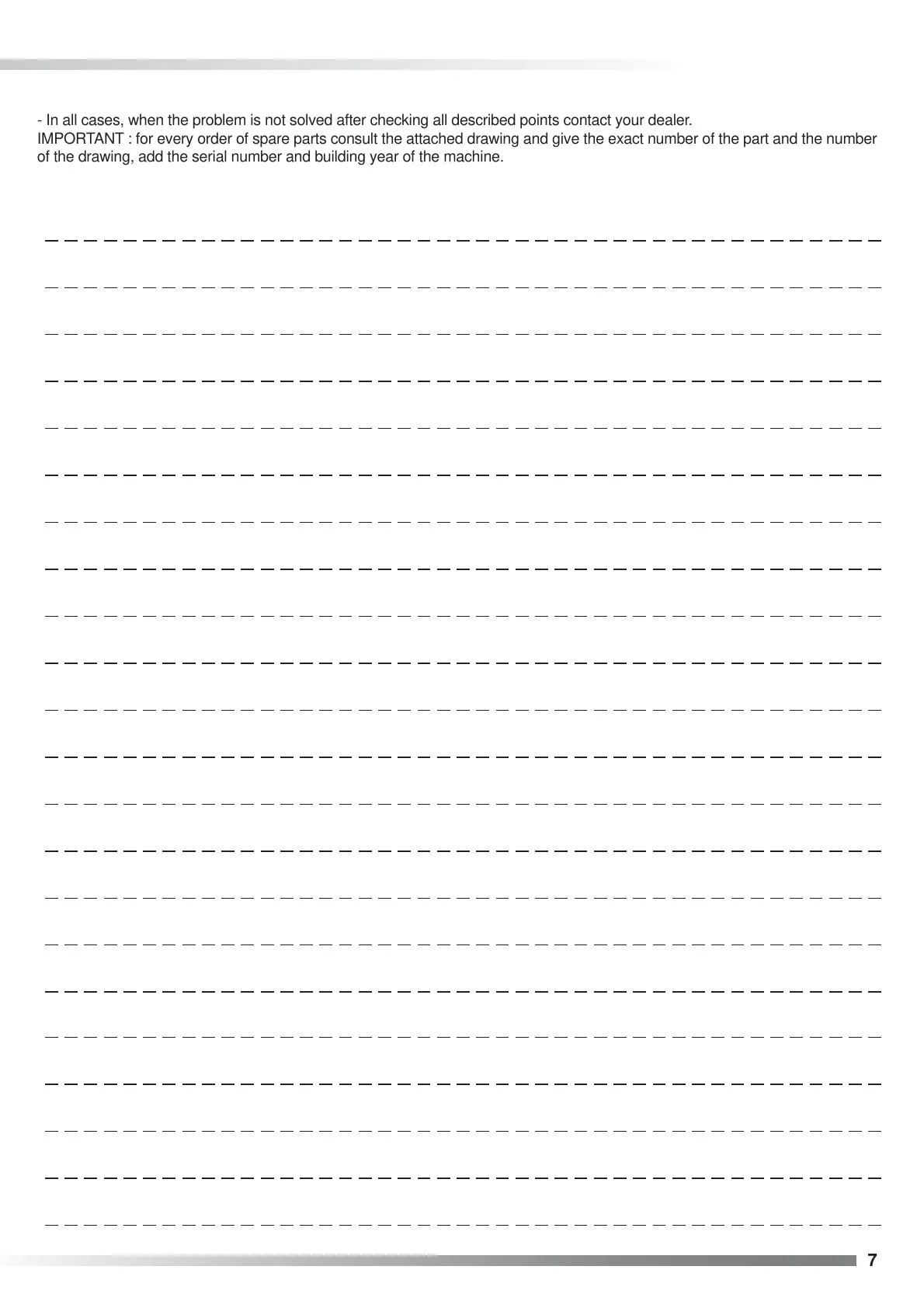 IMPORTANT : for every order of spare parts consult the attached drawing and give the exact number of the part and the number
