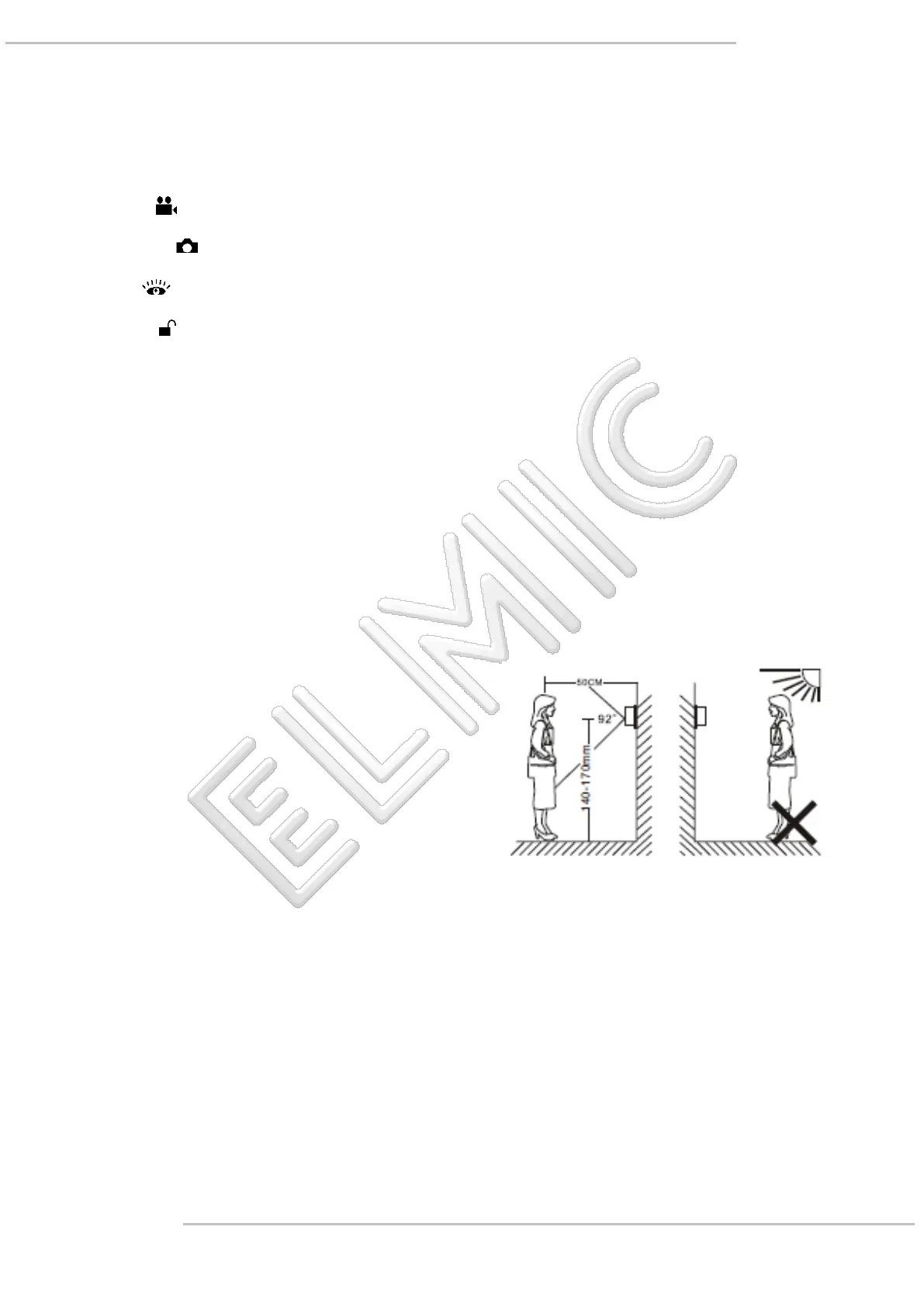 Outdoor unit shall be installed at 1.4~1.7 meter above the floor, and the camera shall avoid facing the sunlight directly.