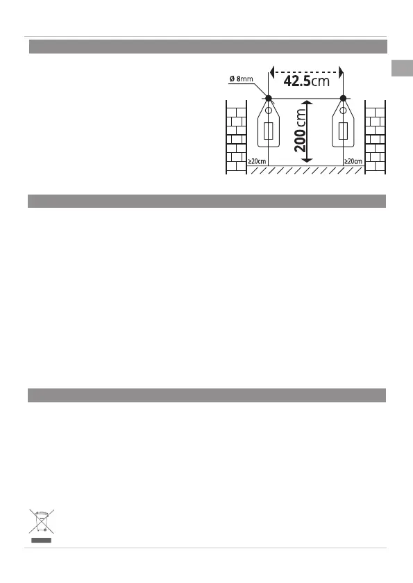 200 cm from the ground and 42.5 cm apart. After