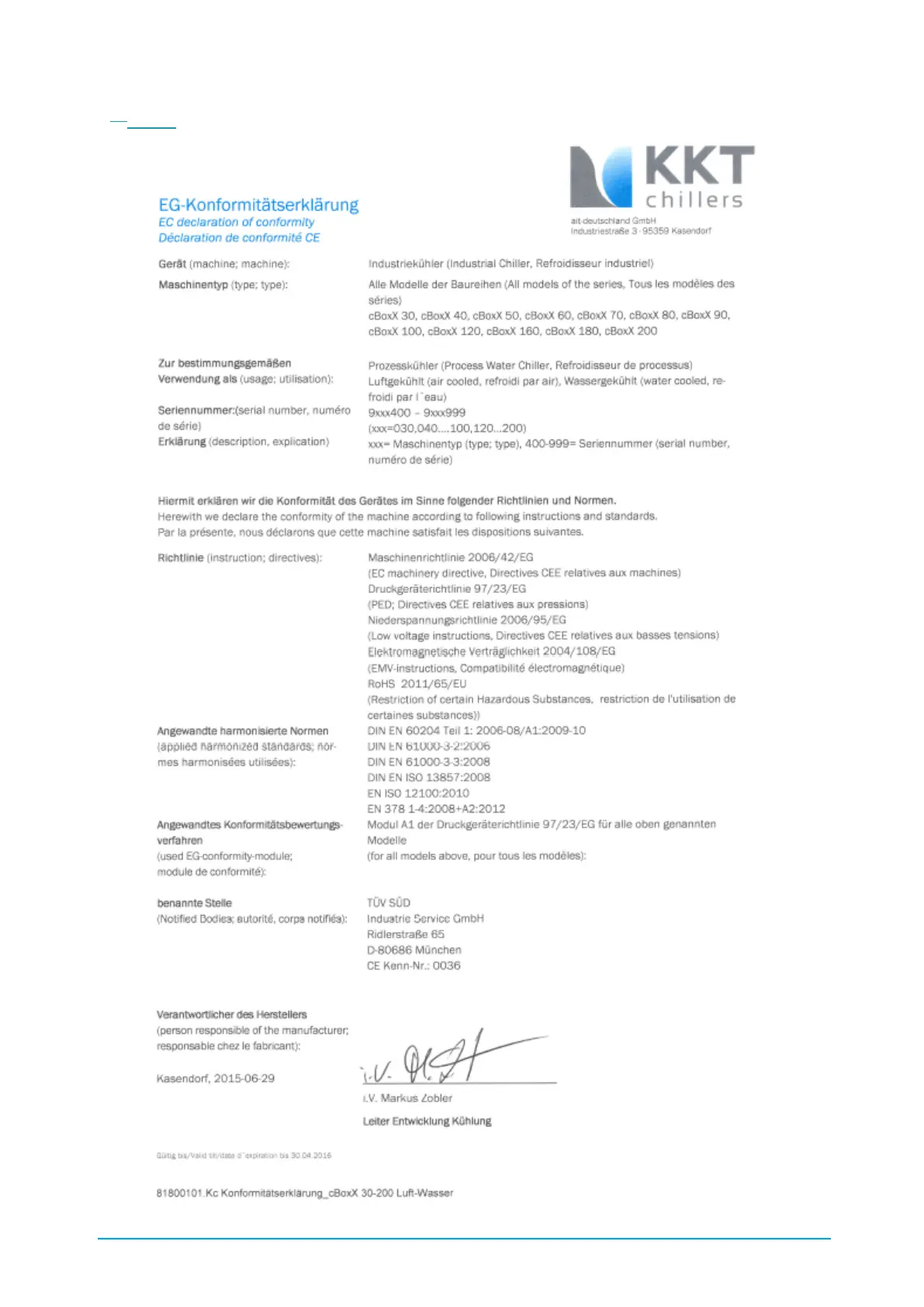 KKT cBoxX 30 - EC Declaration of Conformity; VI. EC Declaration of Conformity