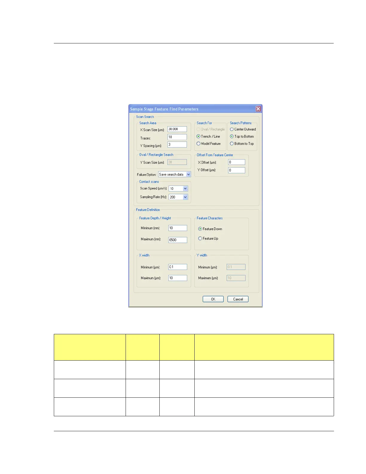 Trench/Line Both Trench Feature Find scan looks for a feature that has