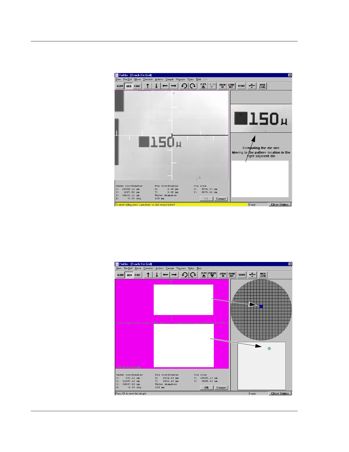 configuration on the wafer. (See Figure 4.20.) The taught die appears in dark