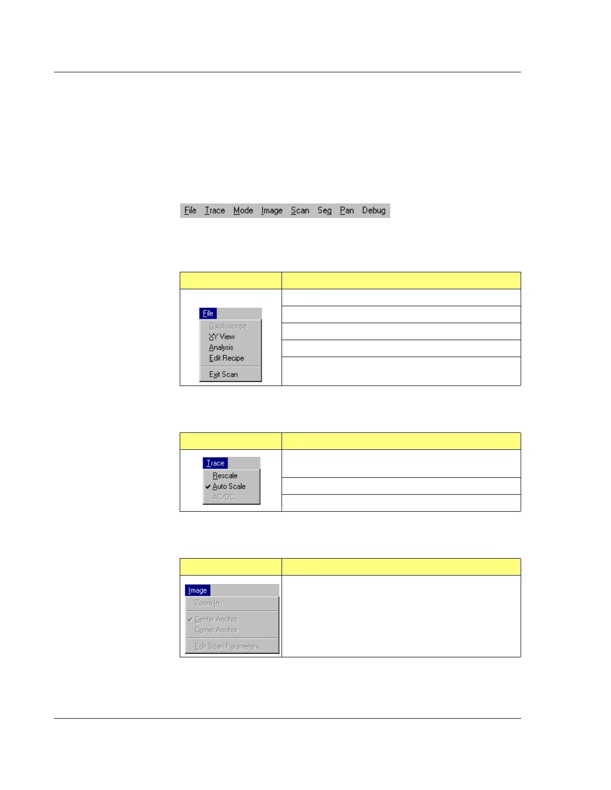 Figure 5.10.) Some menus such as the 3D View Scan Screen - Trace, Mode, Image