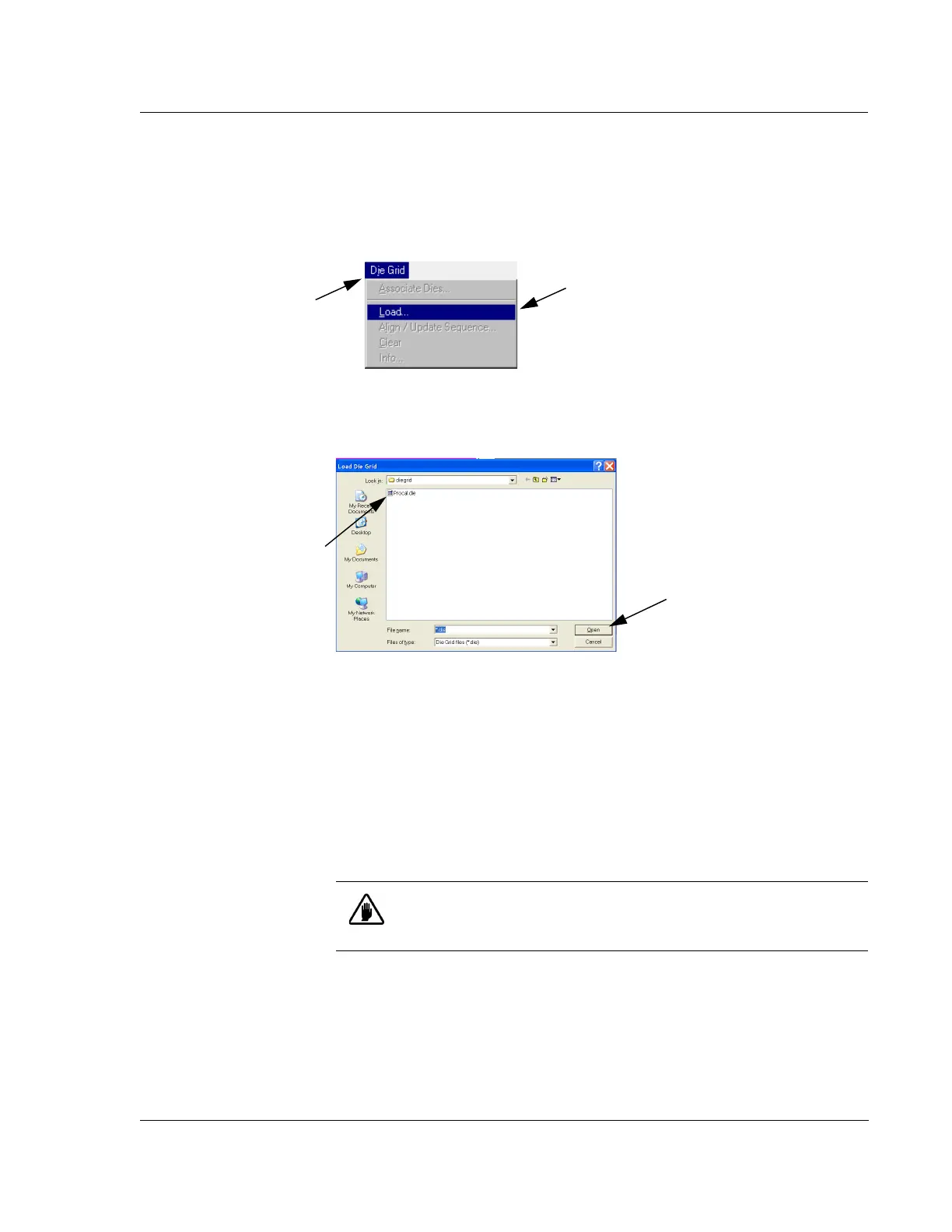 Load Die Grid dialog box overlay